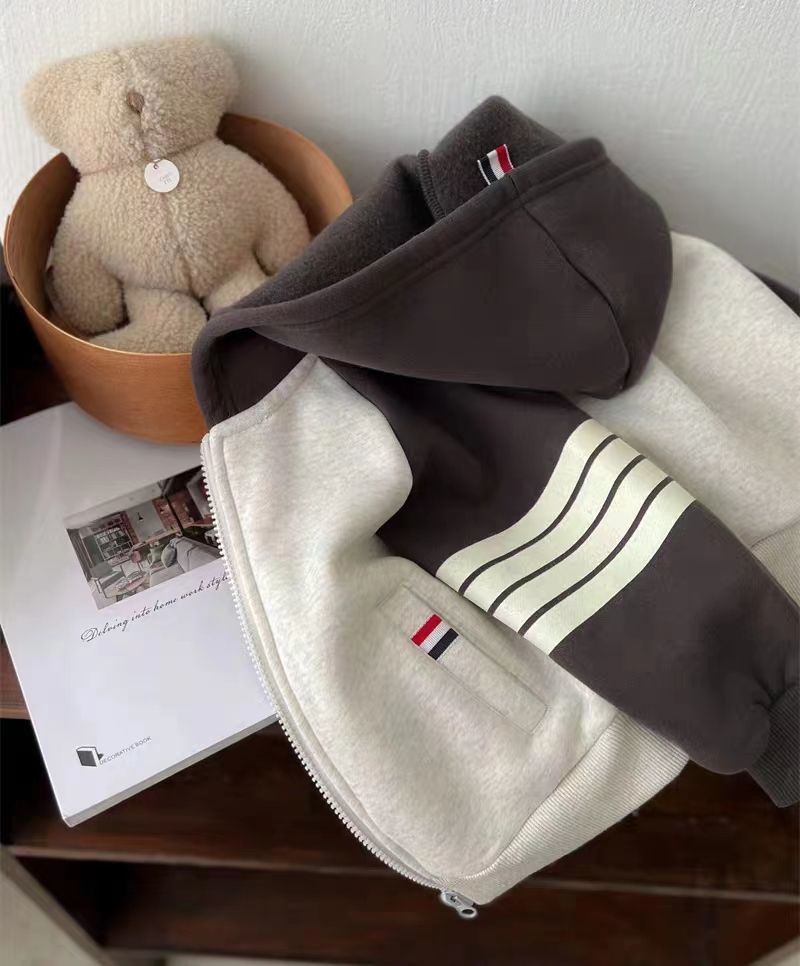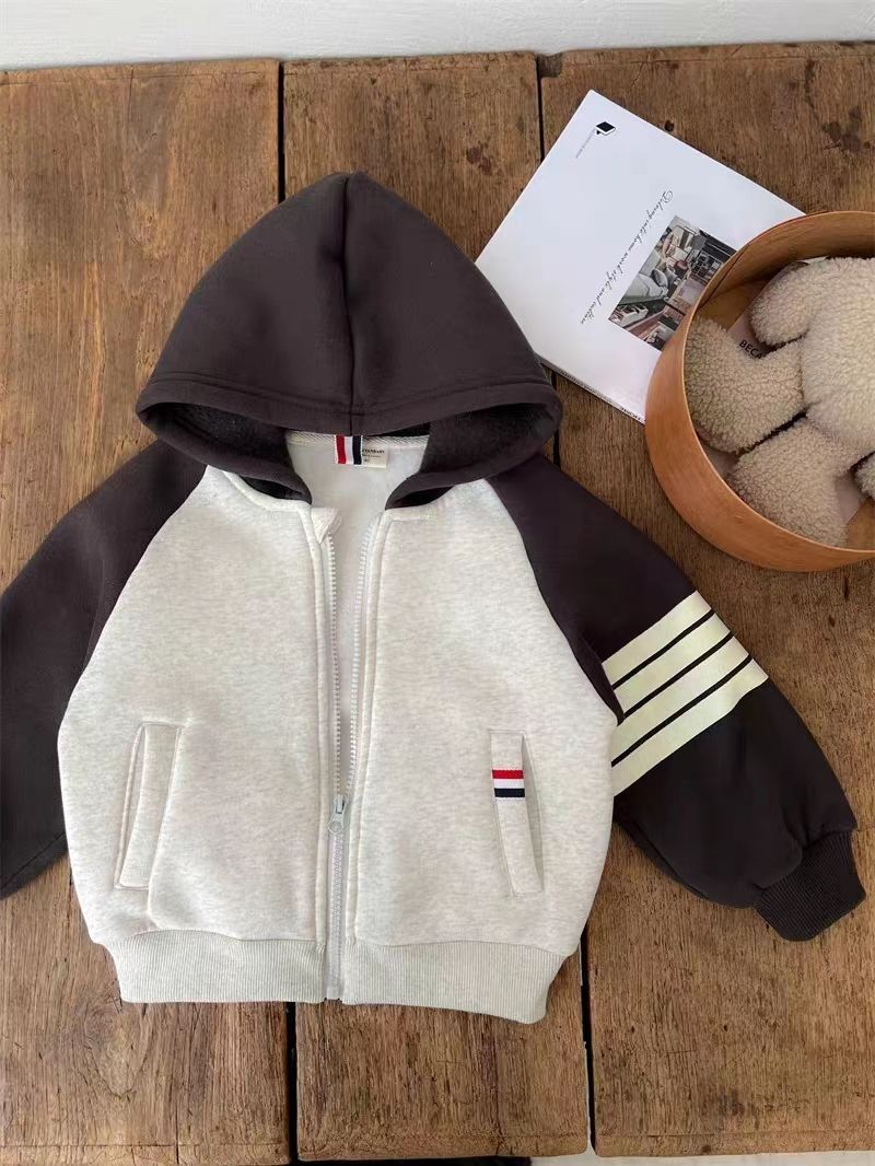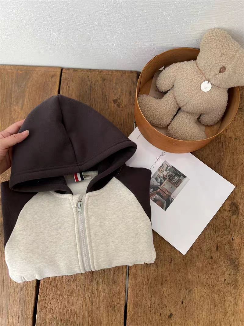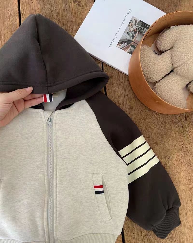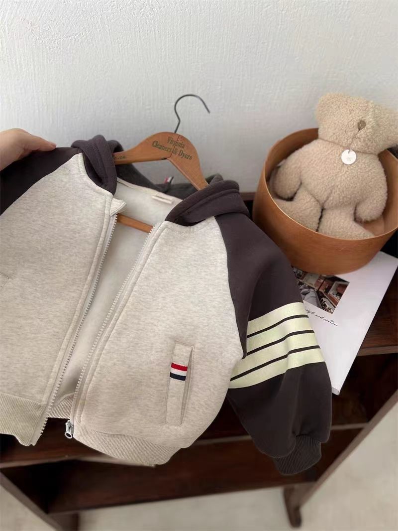 어린이 후드 코트 2023 겨울 새 스타일 소년 소녀 서양식 기모 스웨터 카디건 탑 아동복스토어 가기