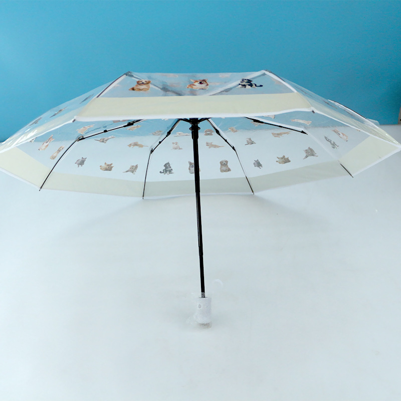 Yugui 개 쿨로 미 만화 투명 접이식 우산 산리오 학생 귀여운 자동 오프닝