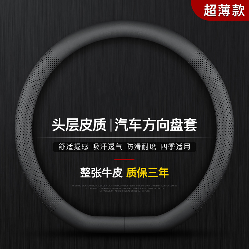 가죽 자동차 스티어링 휠 커버 초박형 미끄럼 방지 남성 및 여성 라운드 D-Type Four Seasons 내마모성 범용 수정 용품 핸들 커버