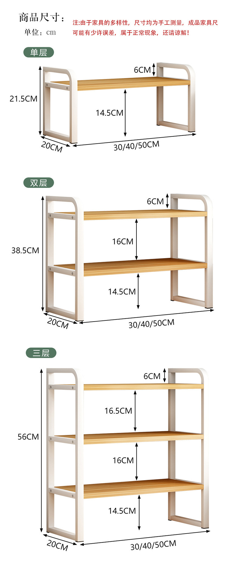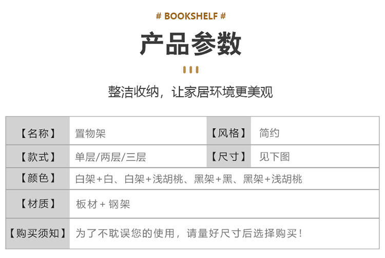 • [조정 가능한 높이] 3 층 흰색 프레임 얕은 호두 보드 (길이 50cm)