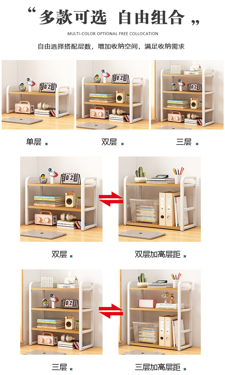 높이 조절 가능한 데스크탑 책장, 다층 수납 가정용 책장, 벽걸이형 가정용 플로어 스탠딩 책장, 데스크탑 도매스토어 가기