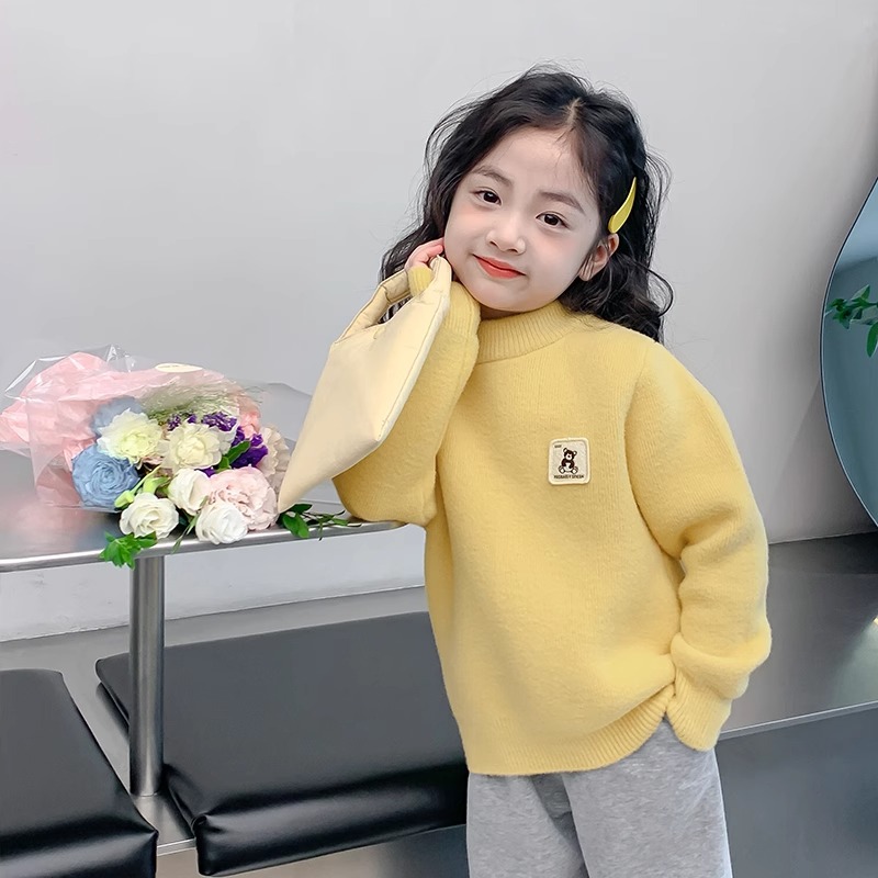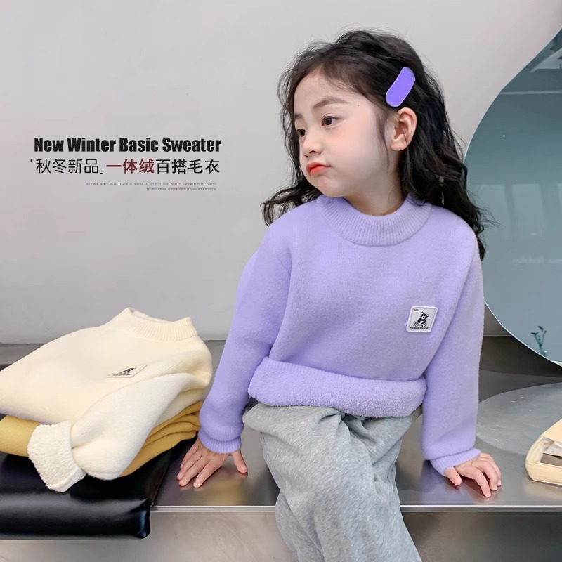 소녀들의 스웨터 가을과 겨울 2023 새로운 소녀들의 서양식 풀오버 니트 탑 어린이 겨울 옷 두껍게 된 바닥 셔츠