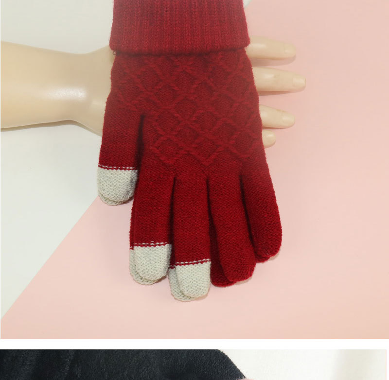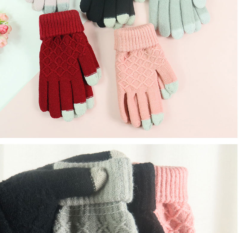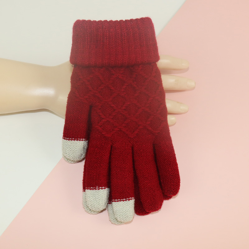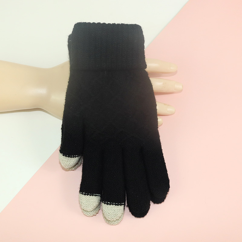 한국식 가을과 겨울 남녀 니트 터치 스크린 따뜻한 장갑 두꺼운 다섯 손가락 장갑 제조업체 자카드 학생 장갑