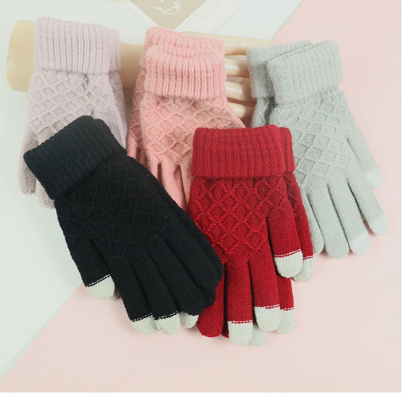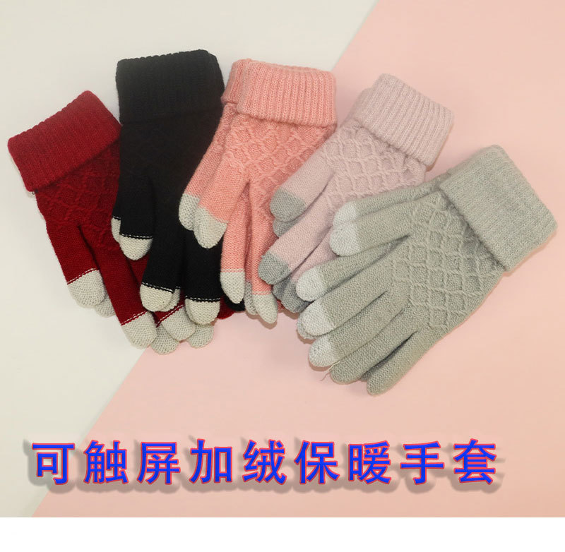 한국식 가을과 겨울 남녀 니트 터치 스크린 따뜻한 장갑 두꺼운 다섯 손가락 장갑 제조업체 자카드 학생 장갑스토어 가기
