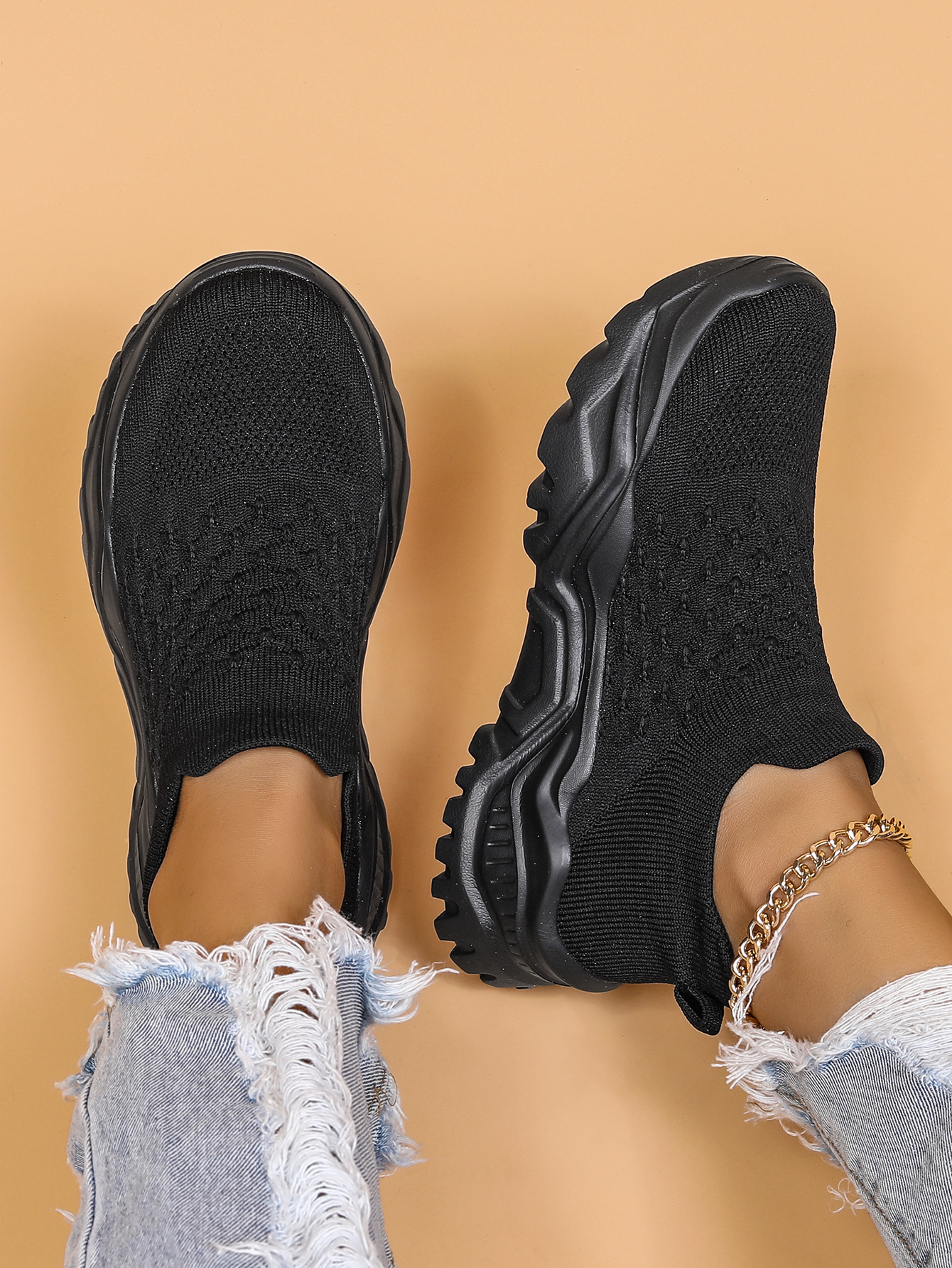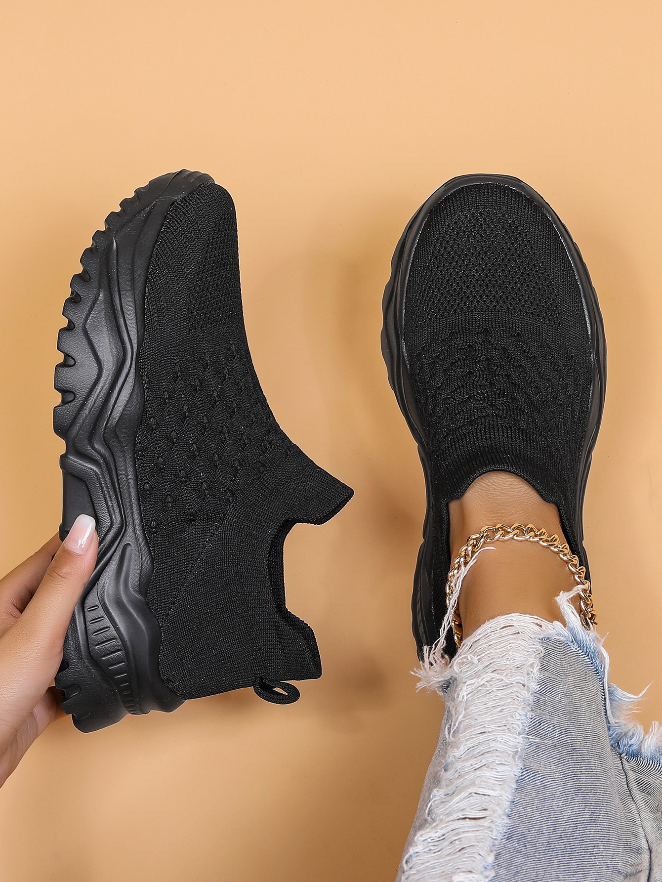 국경 간 AliExpress 아마존 플러스 사이즈 스포츠 여성 신발 통기성 플라잉 짠 양말 신발 신발 슬립 온 게으른 신발