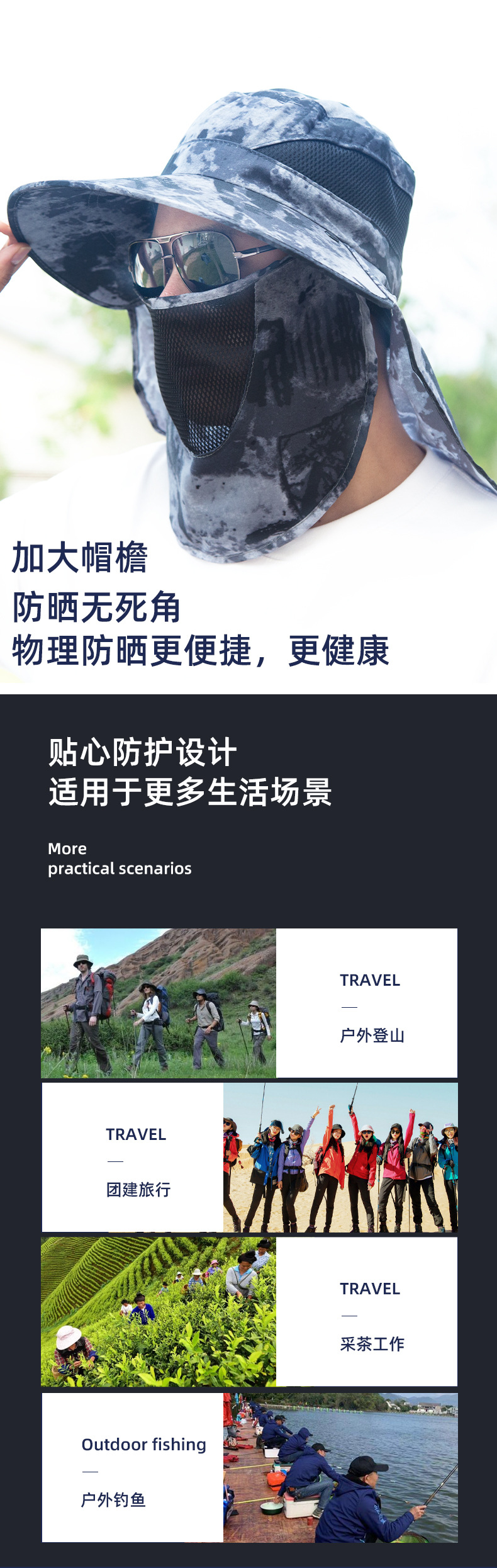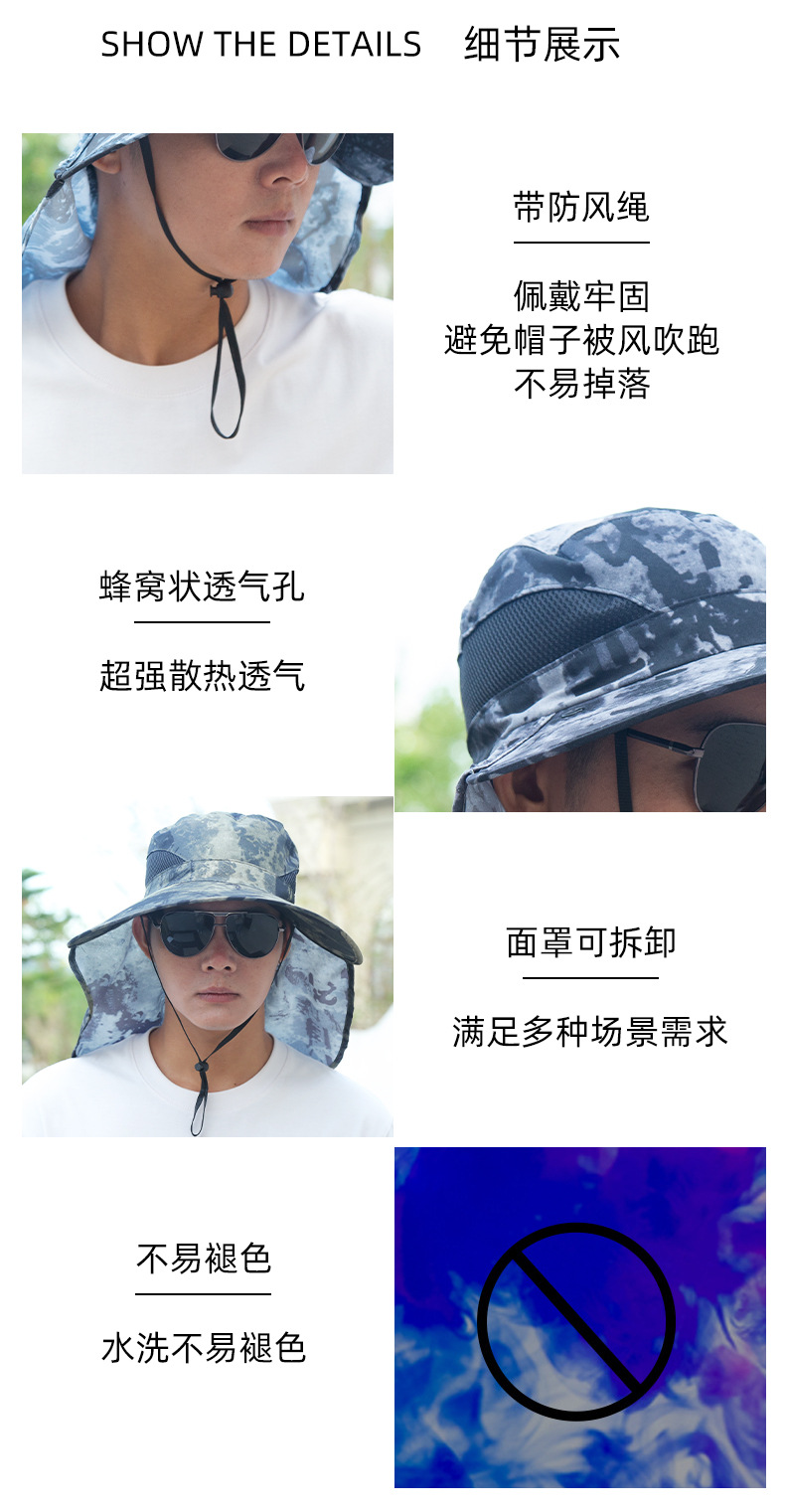 남성 야외 어부 모자 통기성 태양 모자 큰 가장자리 등반 모자 지하 차 따기 태양 모자 사이클링 태양 모자 도매