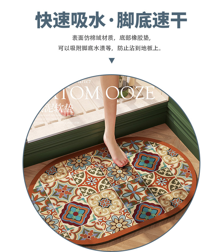 노르딕 스타일 욕실 Diatom 진흙 매트 스퀘어 패턴 욕실 미끄럼 방지 빠른 건조 매트 부드러운 피부 친화적 인 매트스토어 가기