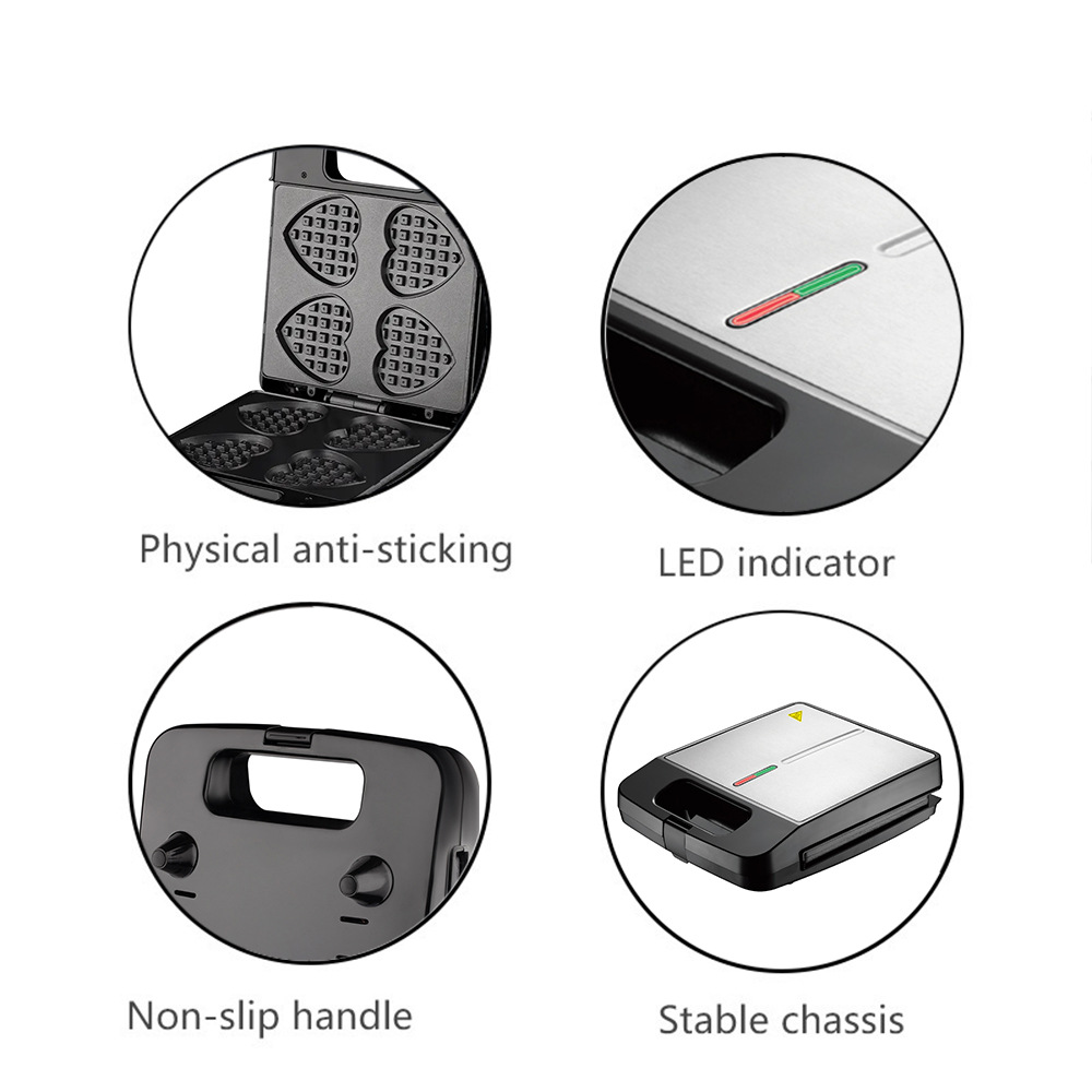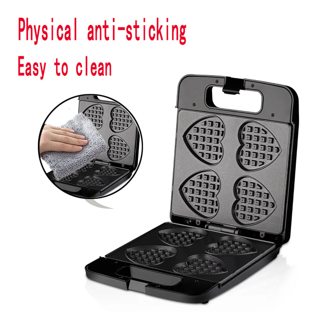 110V 국경 간 가정용 하트 모양의 와플 메이커 샌드위치 메이커 토스트 4 조각 와플 아침 식사 기계 케이크 기계