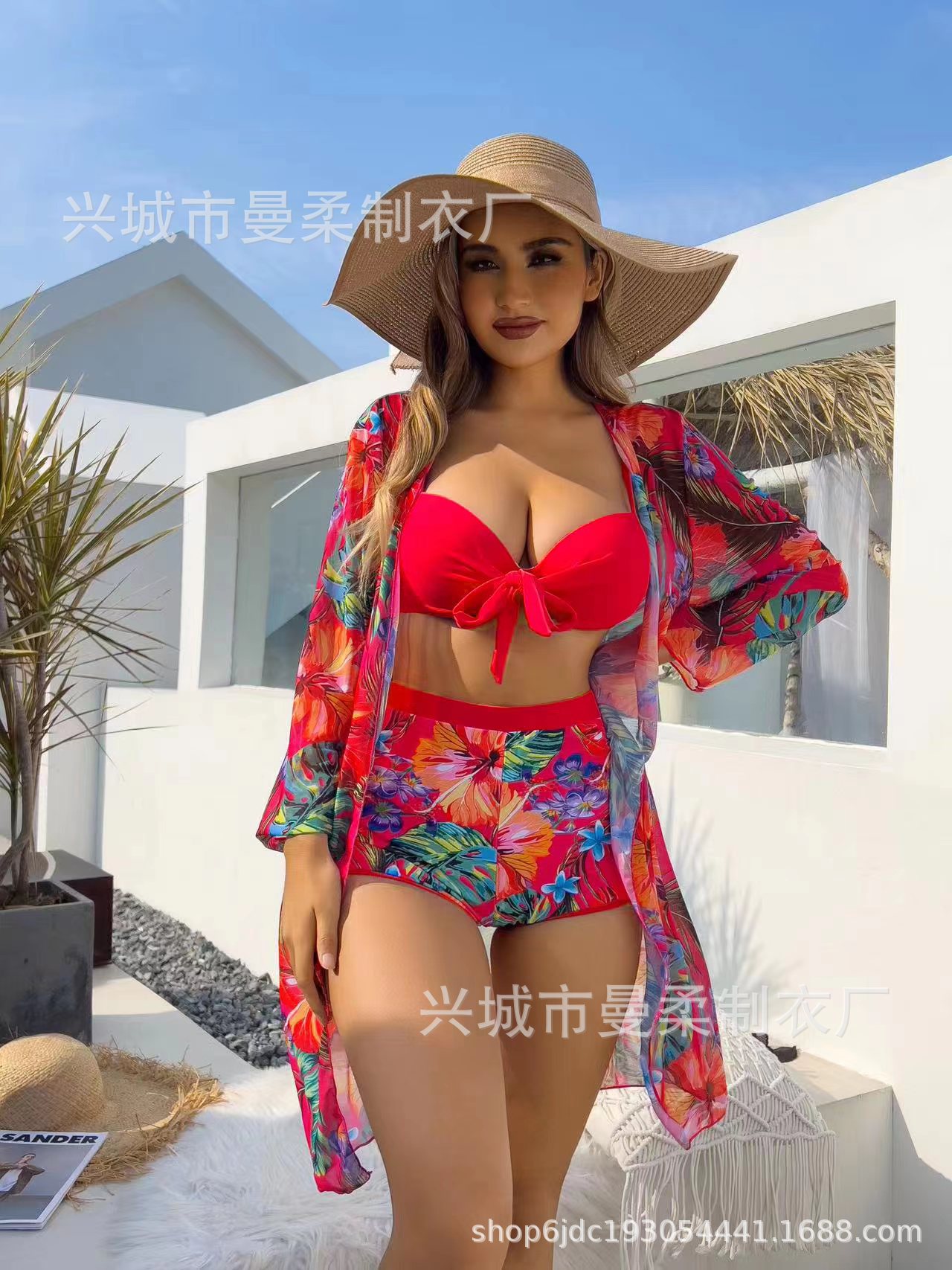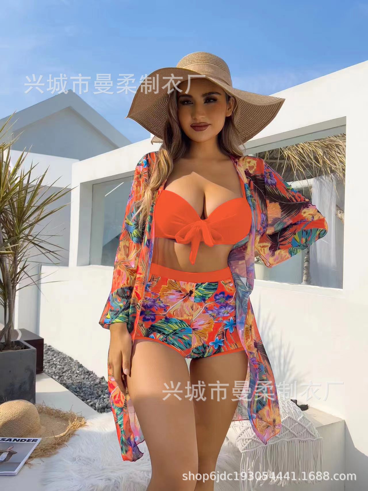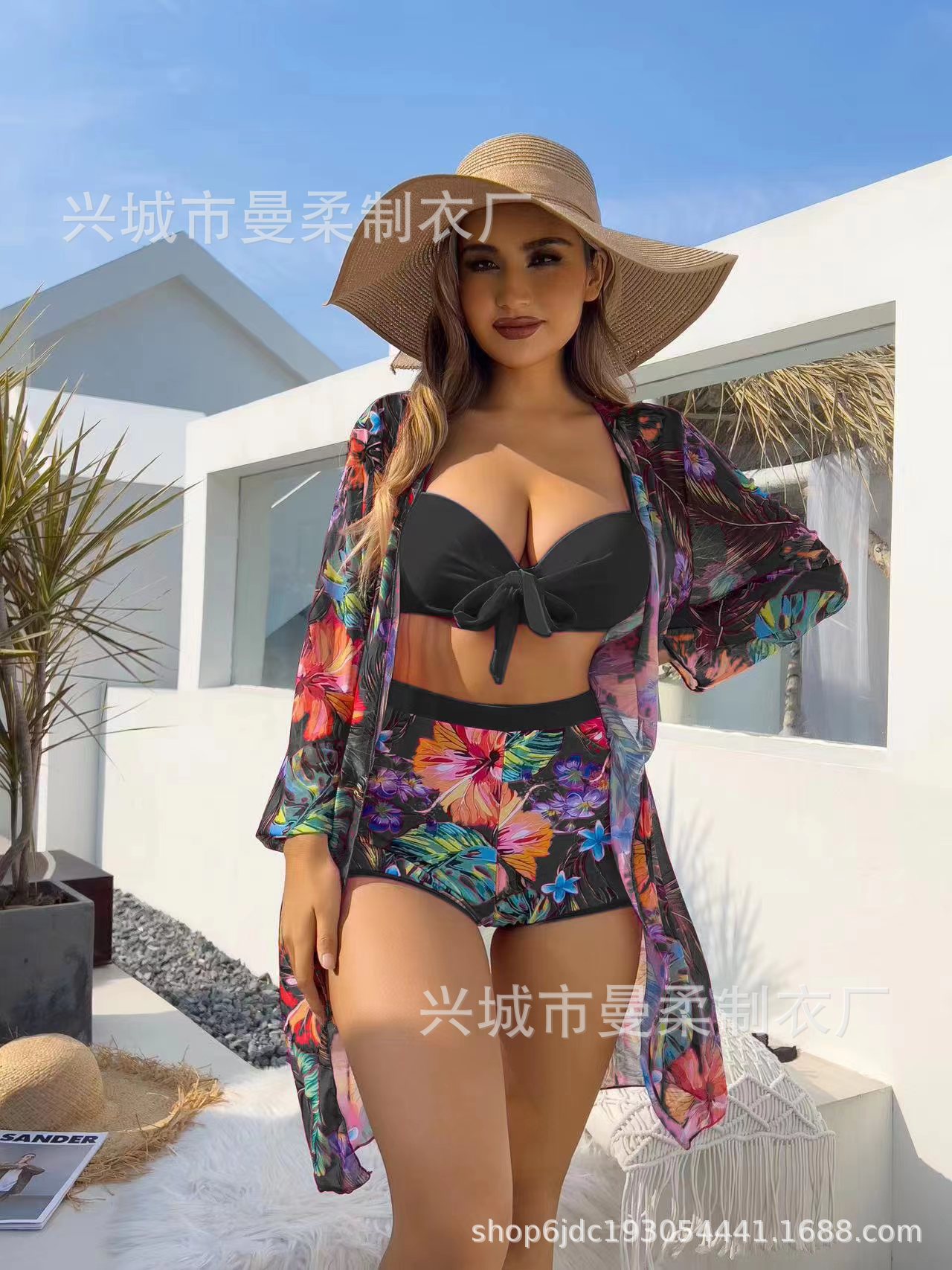 2025 새로운 국경 간 유럽과 미국의 섹시한 3 피스 블라우스 비키니 수영복 여성 아마존 제조 업체 도매 수영복