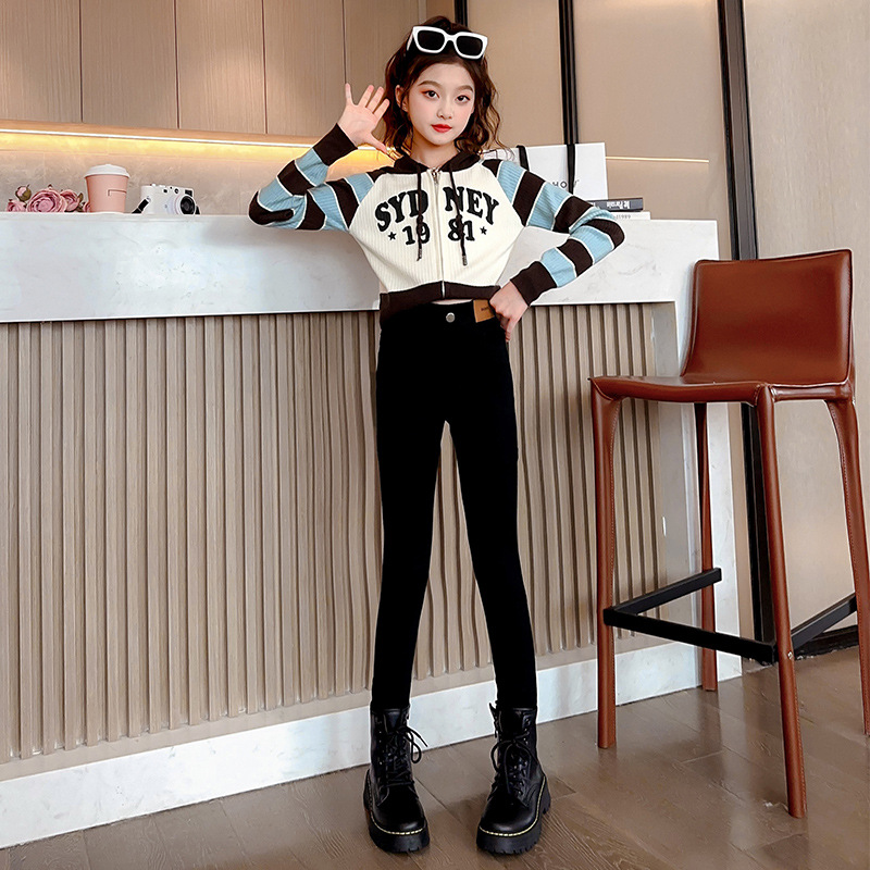 여자 기모 스키니 팬츠 겨울 착용 2023 어린이 스트레치 슬림 레깅스 겉옷 여자 겨울 바지 패션