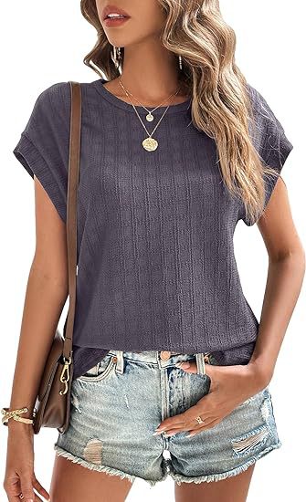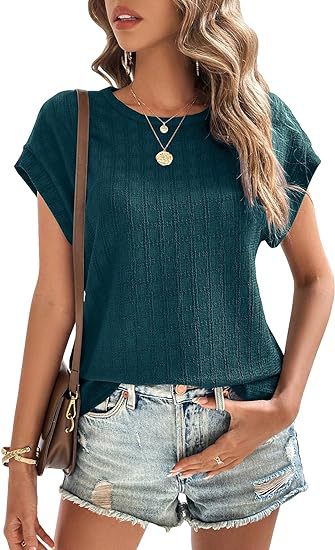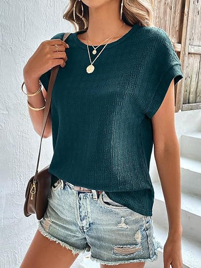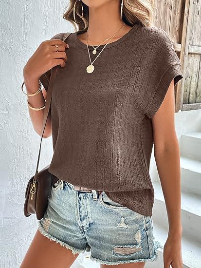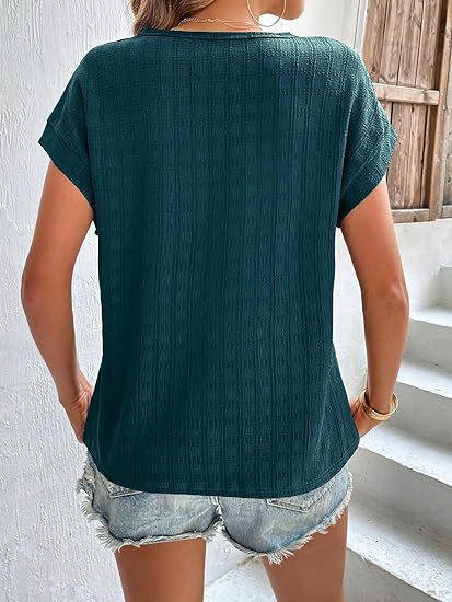 아마존 해외직구 2024 유럽 및 미국 여성복 여름 신상 인기 자카드 체크 라운드넥 루즈핏 반팔 티셔츠스토어 가기