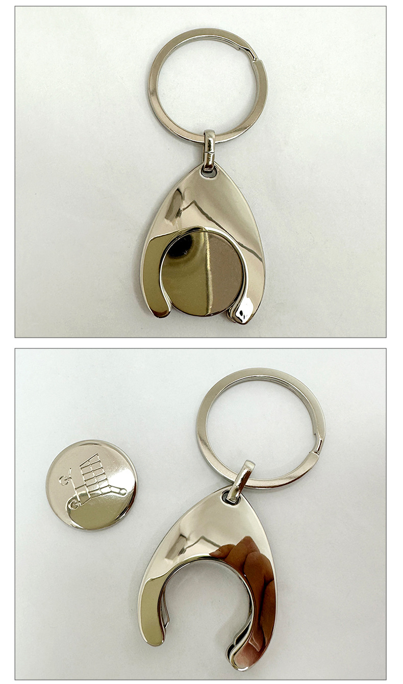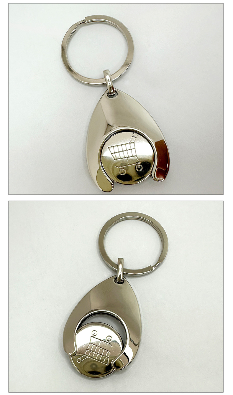 뜨거운 판매 유로 달러 금속 토큰 키 체인 레이저 새겨진 로고 작은 선물 쇼핑 카트 펜던트스토어 가기