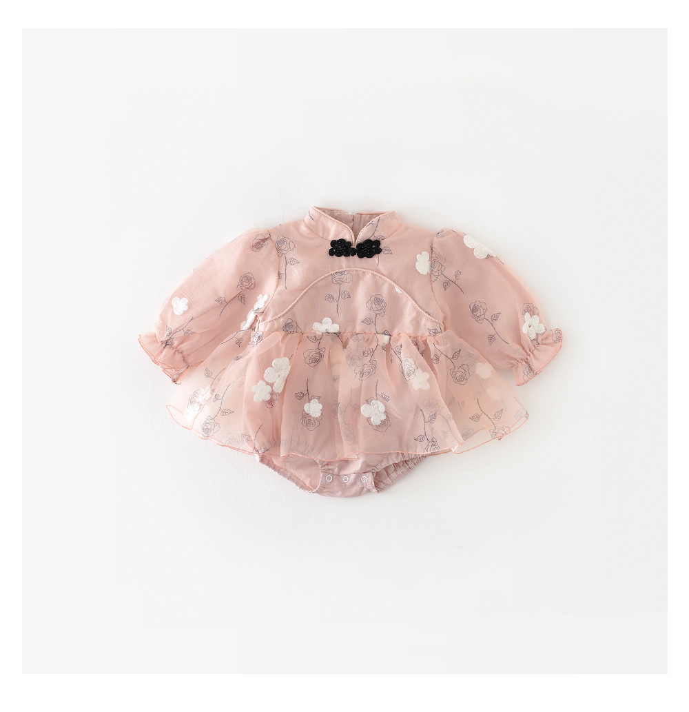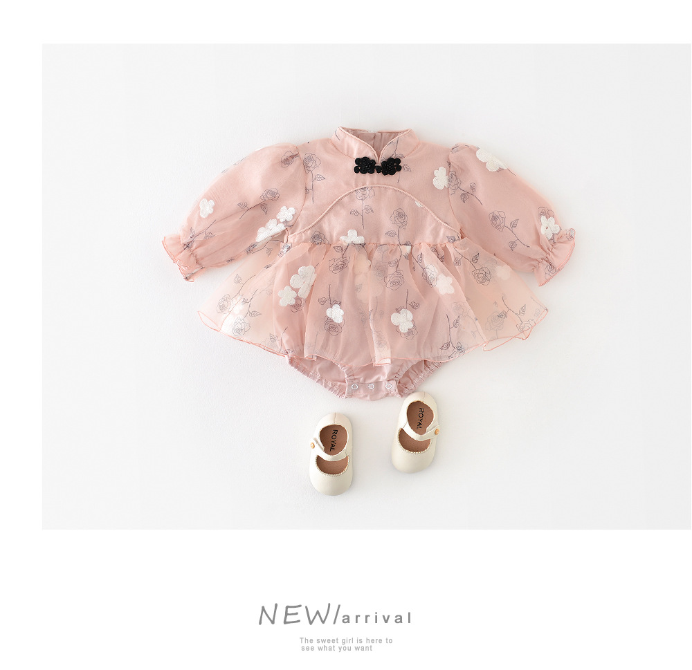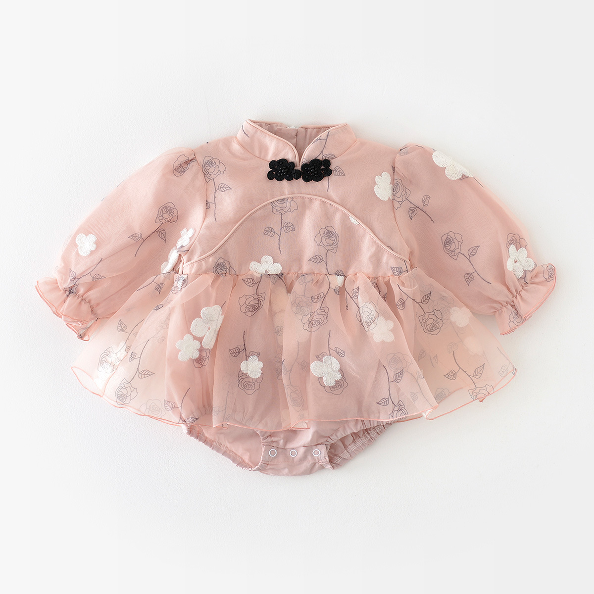 아기 소녀 봄 의류 원피스 봄 새로운 중국 스타일 꽃 롬퍼 스커트 신생아 서양식 긴 소매