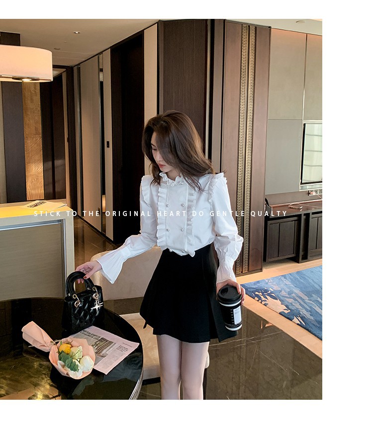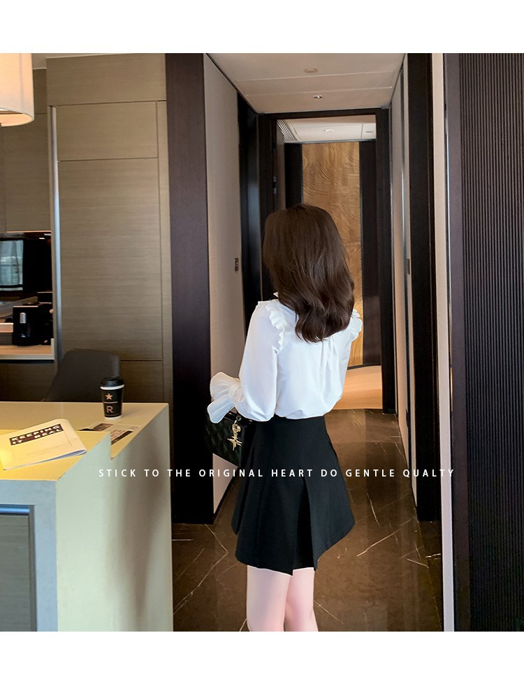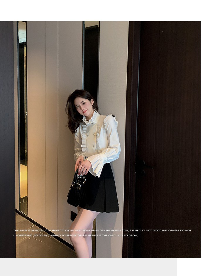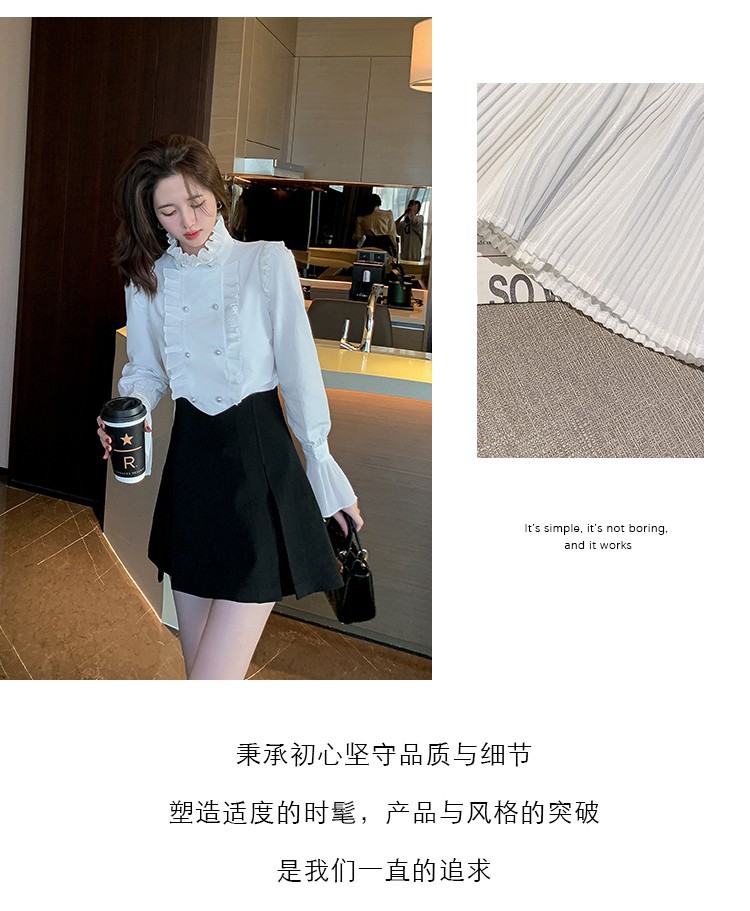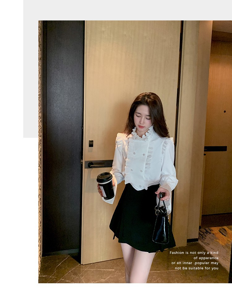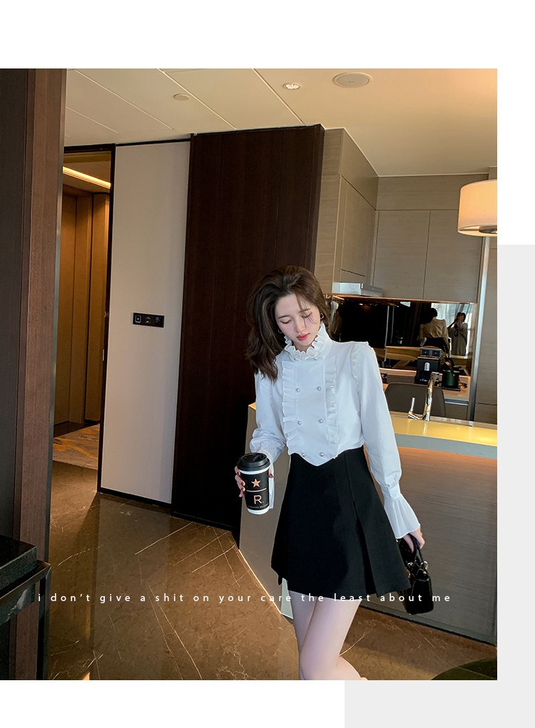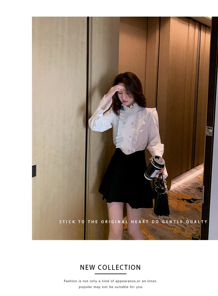 서양식 나이를 줄이는 나무 귀 우아한 스탠드 칼라 쉬폰 셔츠 국경 여성 의류 봄과 가을 새로운 패션 주름진 작은 셔츠