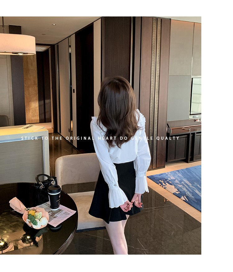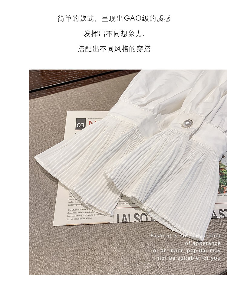서양식 나이를 줄이는 나무 귀 우아한 스탠드 칼라 쉬폰 셔츠 국경 여성 의류 봄과 가을 새로운 패션 주름진 작은 셔츠스토어 가기