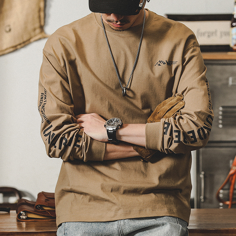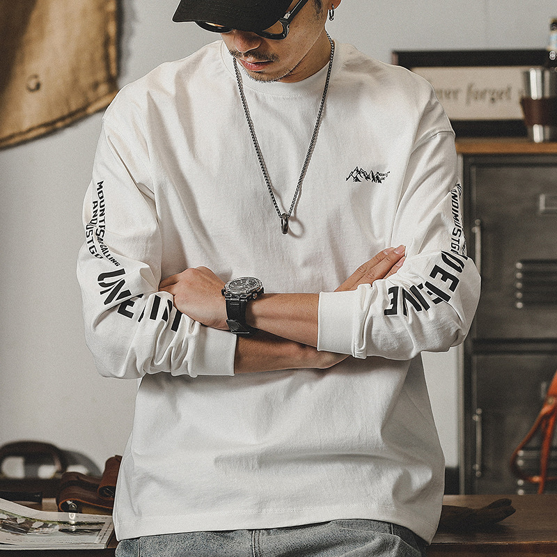 Gereno 아메리칸 헤비급 티셔츠 남성 긴팔 가을 패션 브랜드 ins 루즈 캐주얼 코튼 탑 마운틴 스타일 남성 패션 트렌드