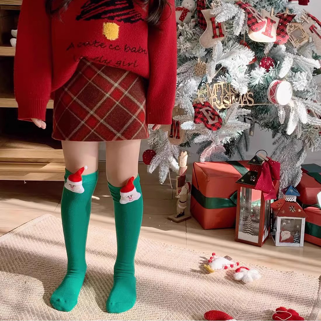 2025 여아용 신상 가을 겨울 모직 레드 체크 플리스 스커트 9번 설날 의상 하이웨이스트 A라인 힙허깅 숏 스커트스토어 가기