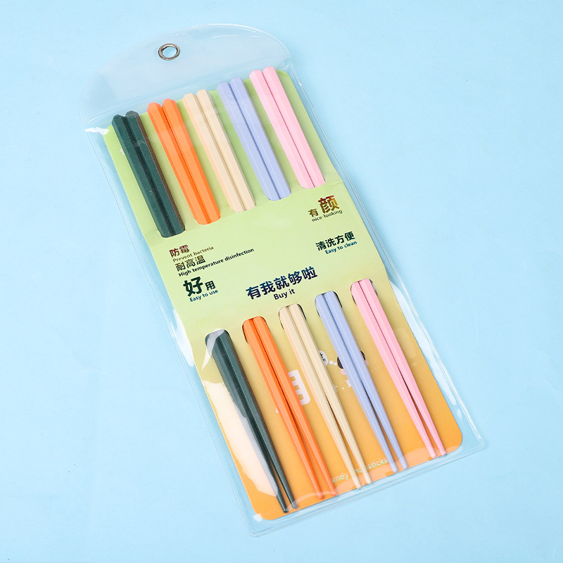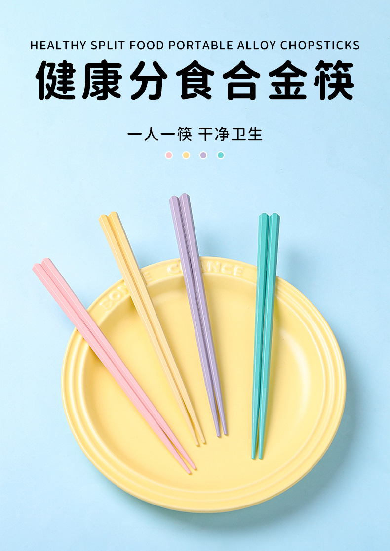 학생과 청소년을 위한 우아한 5쌍의 합금 젓가락 점심 휴대용 젓가락 귀여운 캔디 컬러 식기 젓가락 걸이 가능