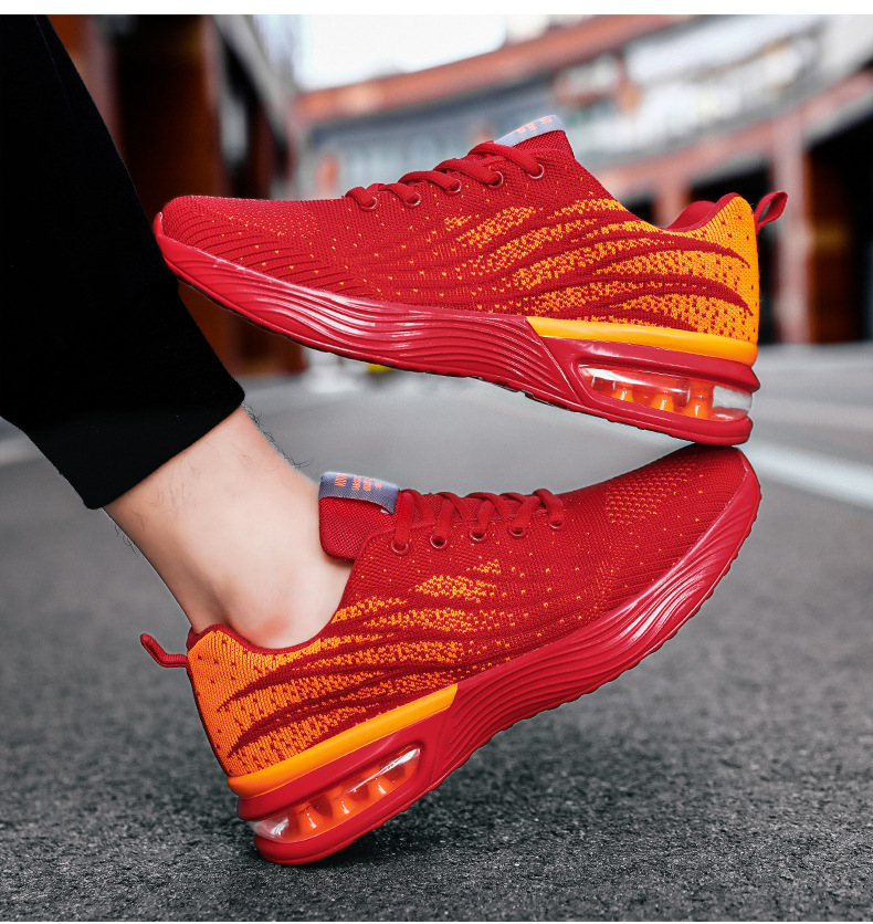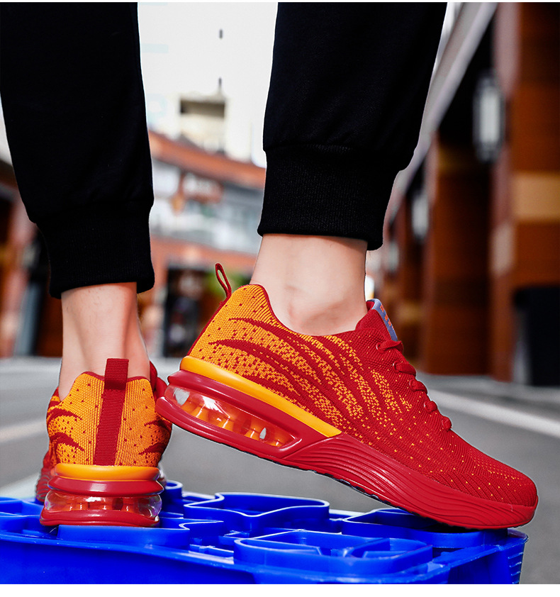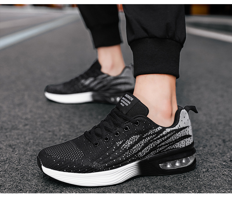 국경 간 플러스 사이즈 남성 신발 비행 짠 메쉬 표면 통기성 운동화 2024 봄과 여름 로우 탑 에어 쿠션 부드러운 바닥 추세 운동화스토어 가기