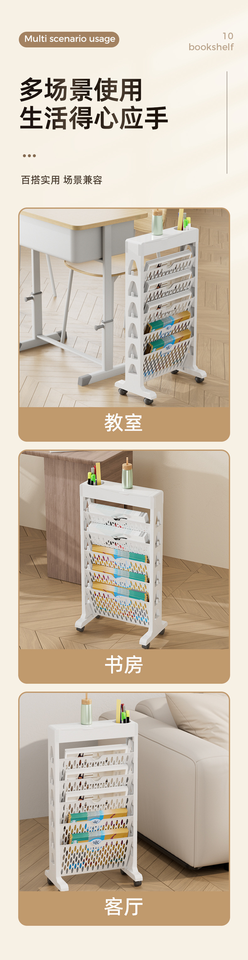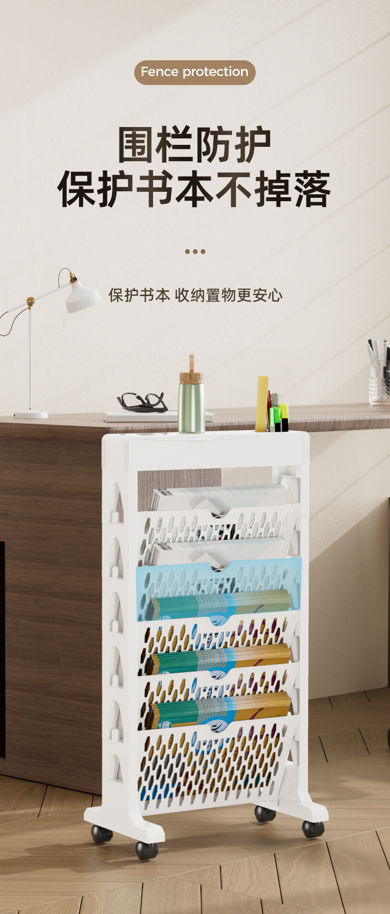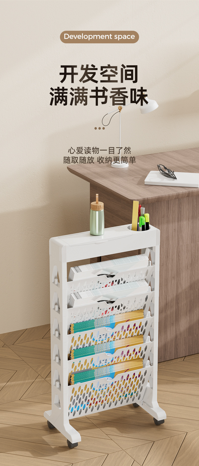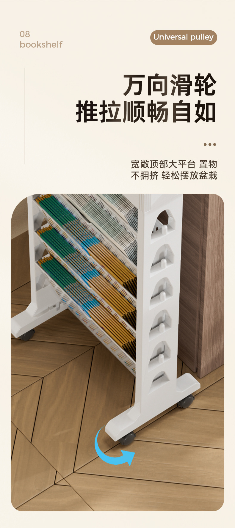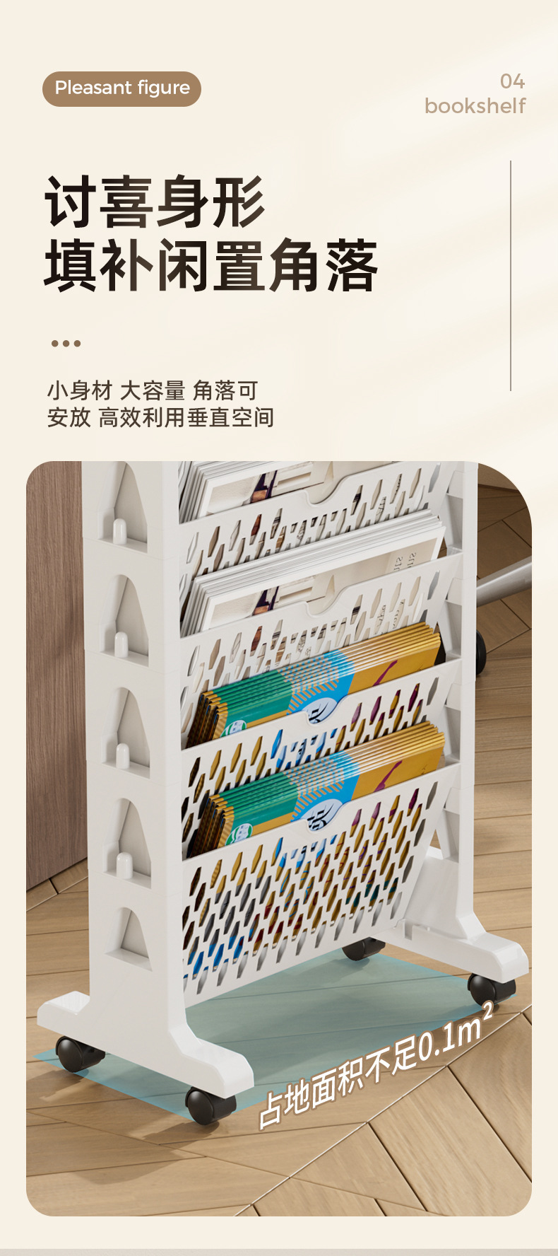 공장 직접 휴대용 플라스틱 저장 랙 롤러 대용량 수직 책장 사무실 바닥 보관 랙