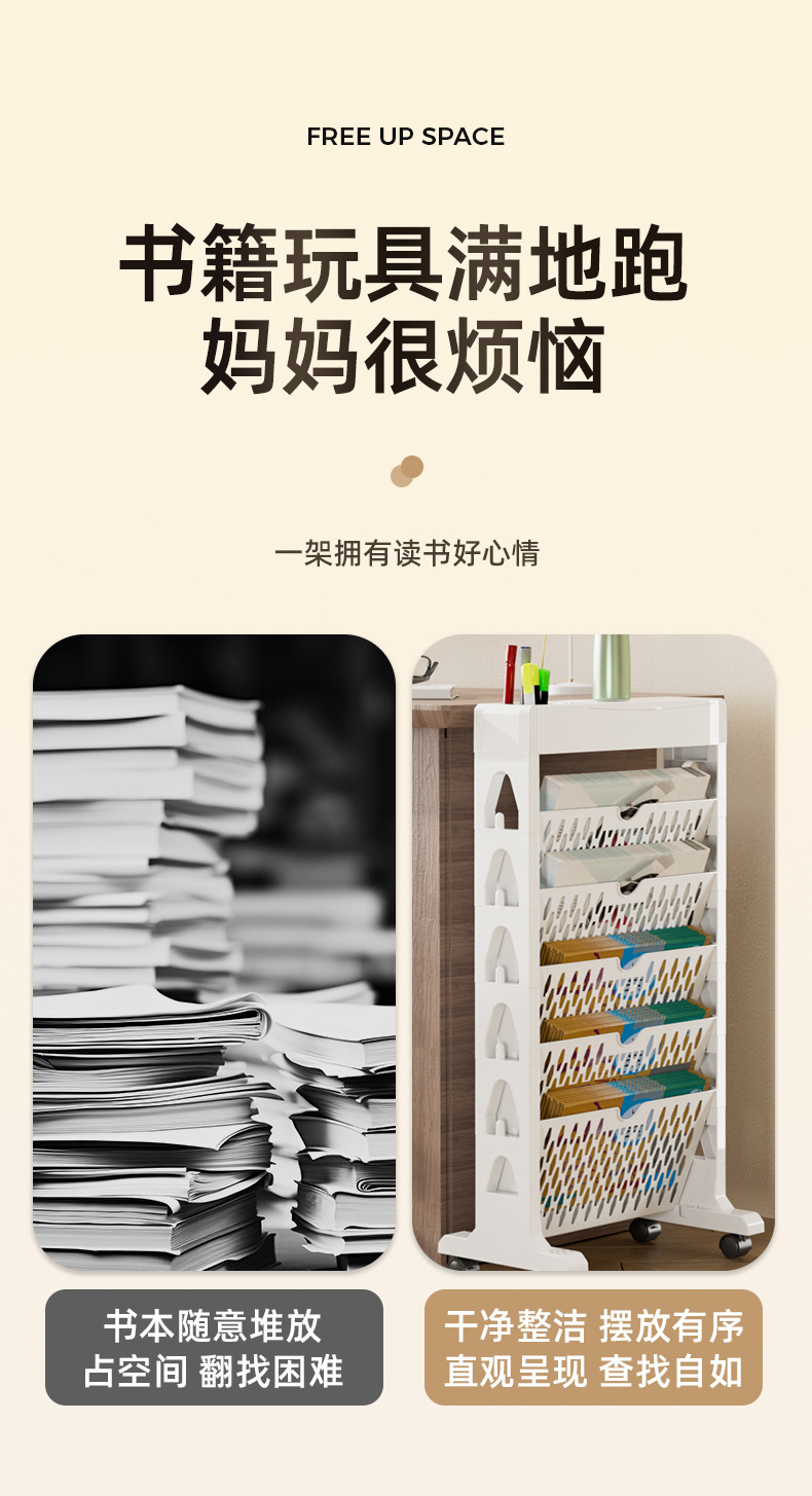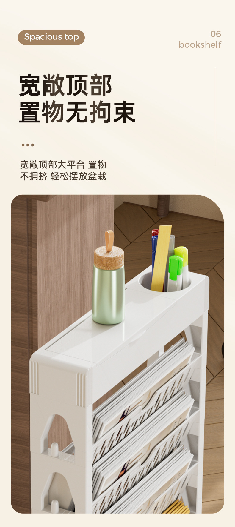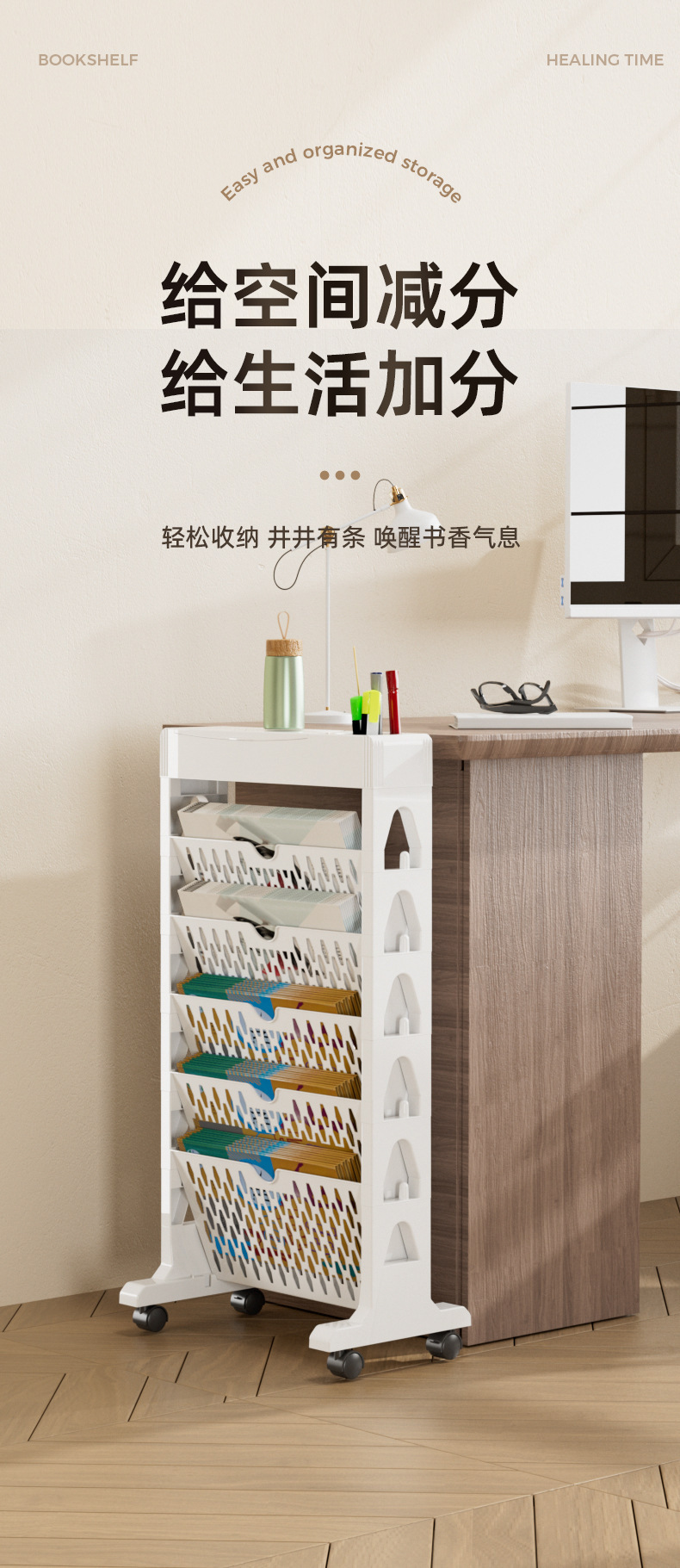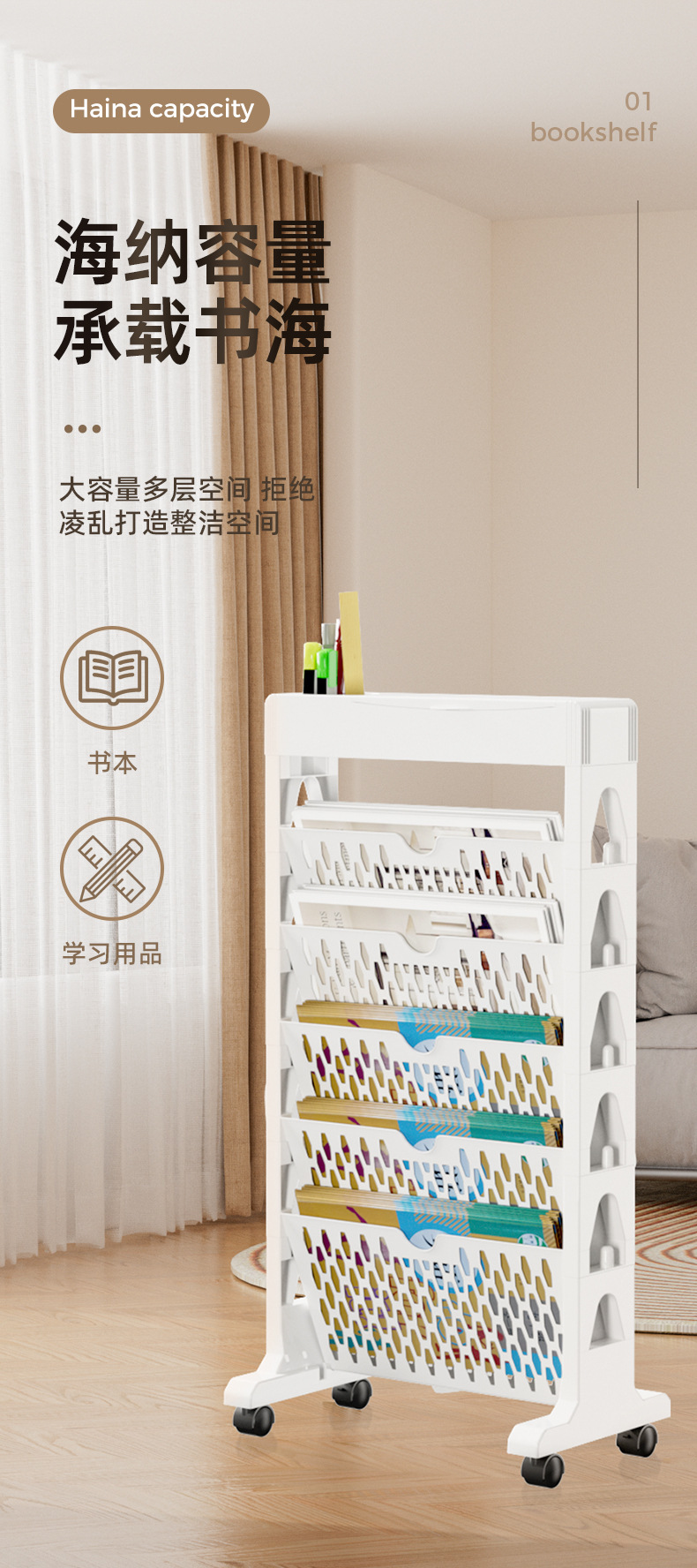 공장 직접 휴대용 플라스틱 저장 랙 롤러 대용량 수직 책장 사무실 바닥 보관 랙스토어 가기