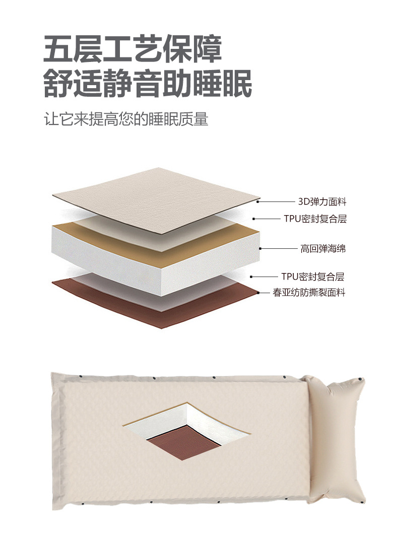자동 팽창 매트리스 야외 캠핑용 완전 자동 팽창 침대 낮잠 매트 바닥 매트 가정용 싱글 매트 두꺼운 버전