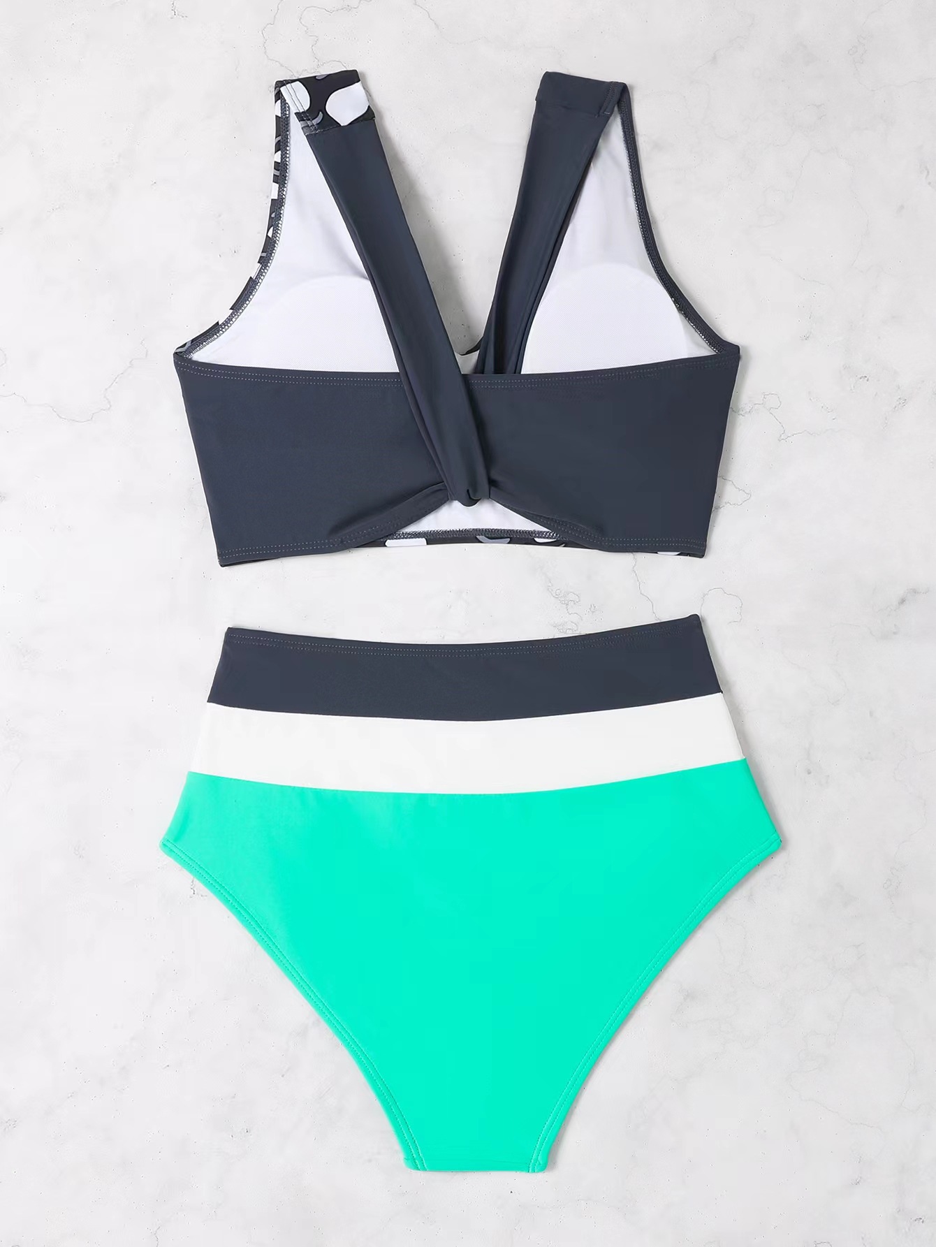 유럽과 미국의 대외 무역 재고 비키니 수영복 여성 폴카 도트 스티칭 듀 비키니 수영복 도매 스플릿 수영복