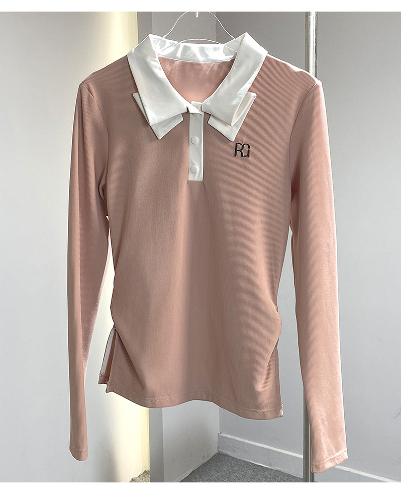 서양식 스포츠 폴로 칼라 핑크 긴팔 티셔츠 여성 틈새 2024 봄과 여름 새로운 짧은 치마 골프 세트