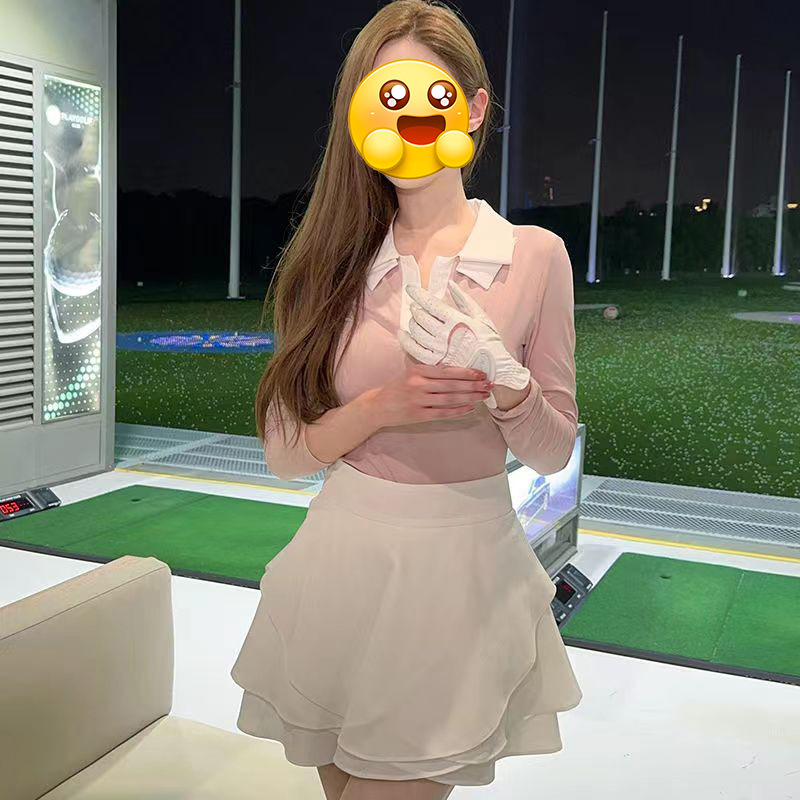 서양식 스포츠 폴로 칼라 핑크 긴팔 티셔츠 여성 틈새 2024 봄과 여름 새로운 짧은 치마 골프 세트스토어 가기