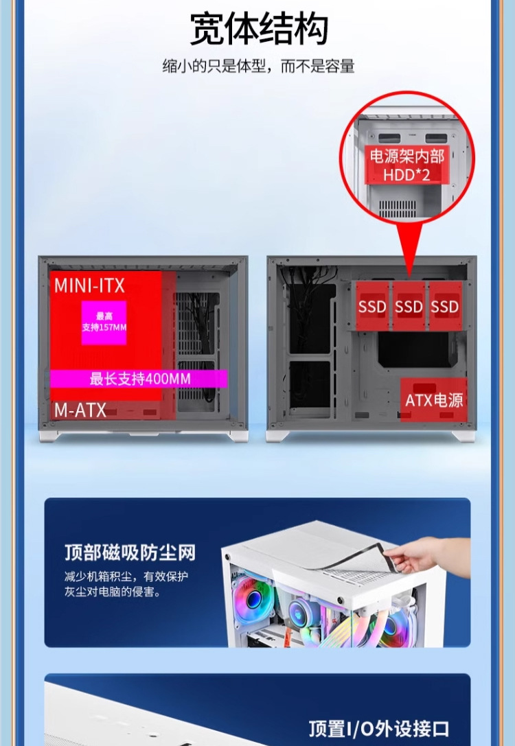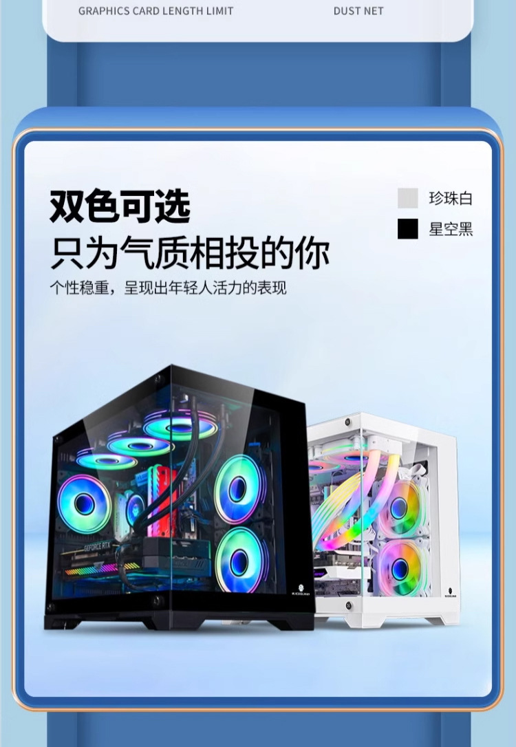 Jiagu 용감한 바다 전망 방 섀시 MATX 파노라마 유리 360 수냉식 데스크톱 컴퓨터 화이트 메인 섀시 재생