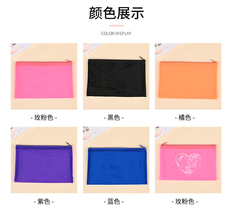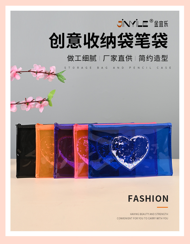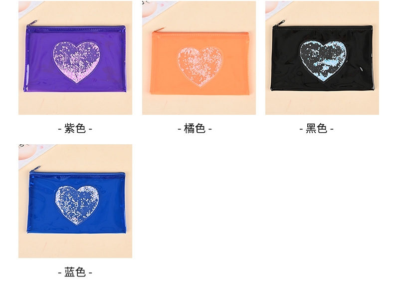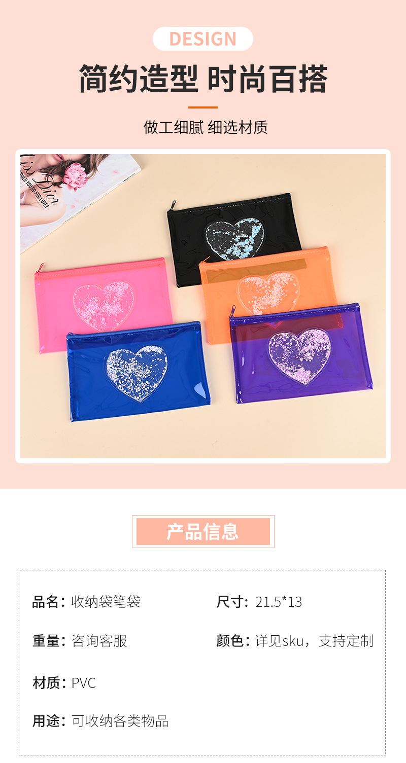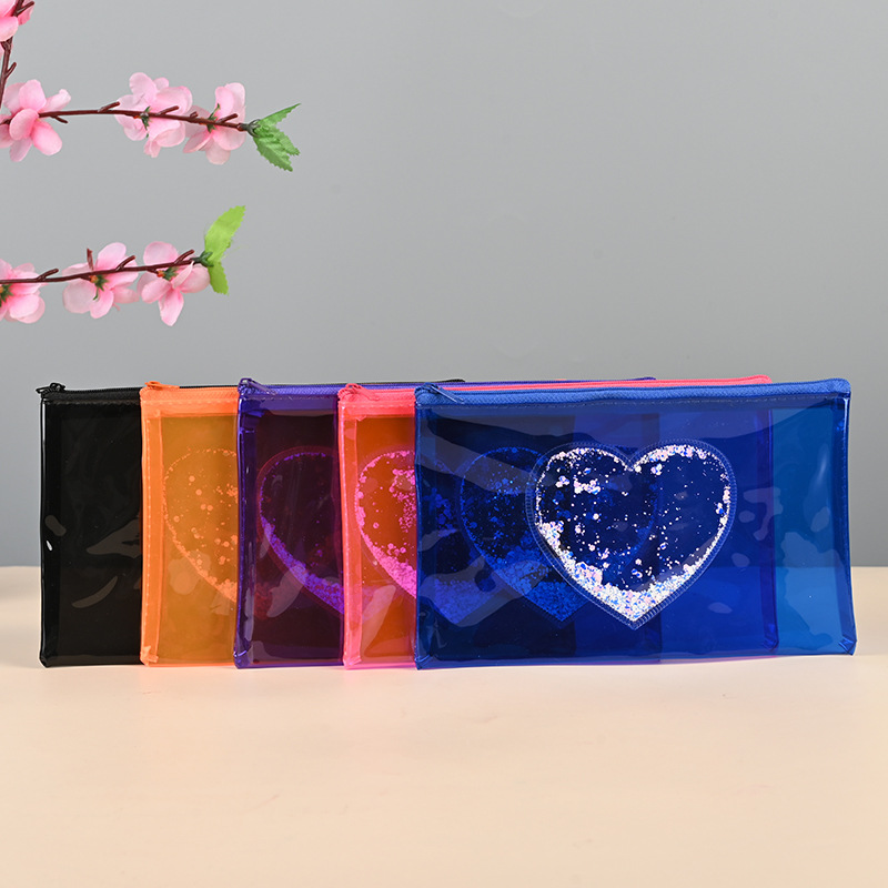 제조업체 컬러 투명 필통 문구 가방 하트 스팽글 인기 PVC 가방 화장품 가방 지퍼 가방 수납 가방스토어 가기