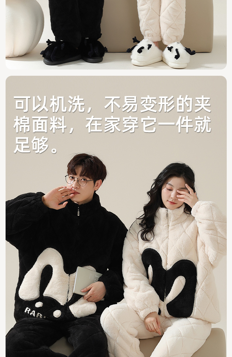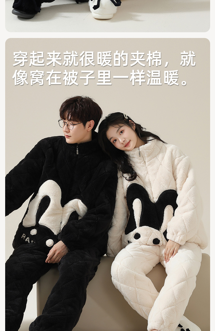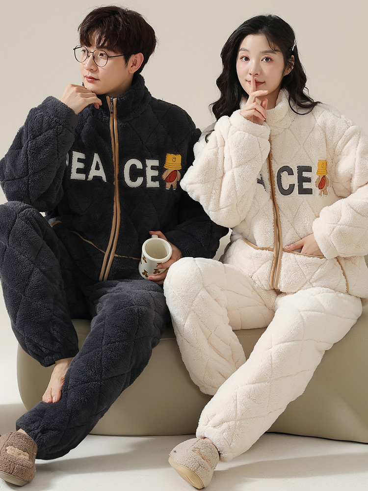 커플 잠옷 여성의 가을과 겨울 산호 양털 3 층면 패딩 재킷 기모 걸쭉한 남성용 긴 잠옷 홈웨어 겨울스토어 가기