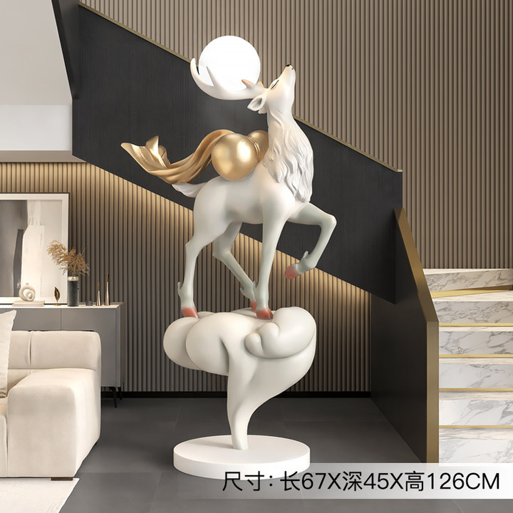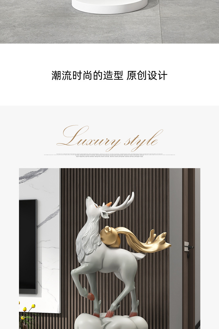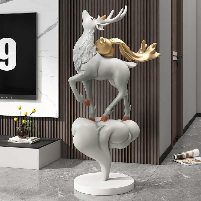 대형 엘크 거실 바닥 장식품 빛 고급 고급 고급 홈 장식 입구 조각 오프닝 집들이 선물