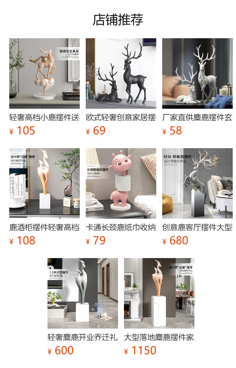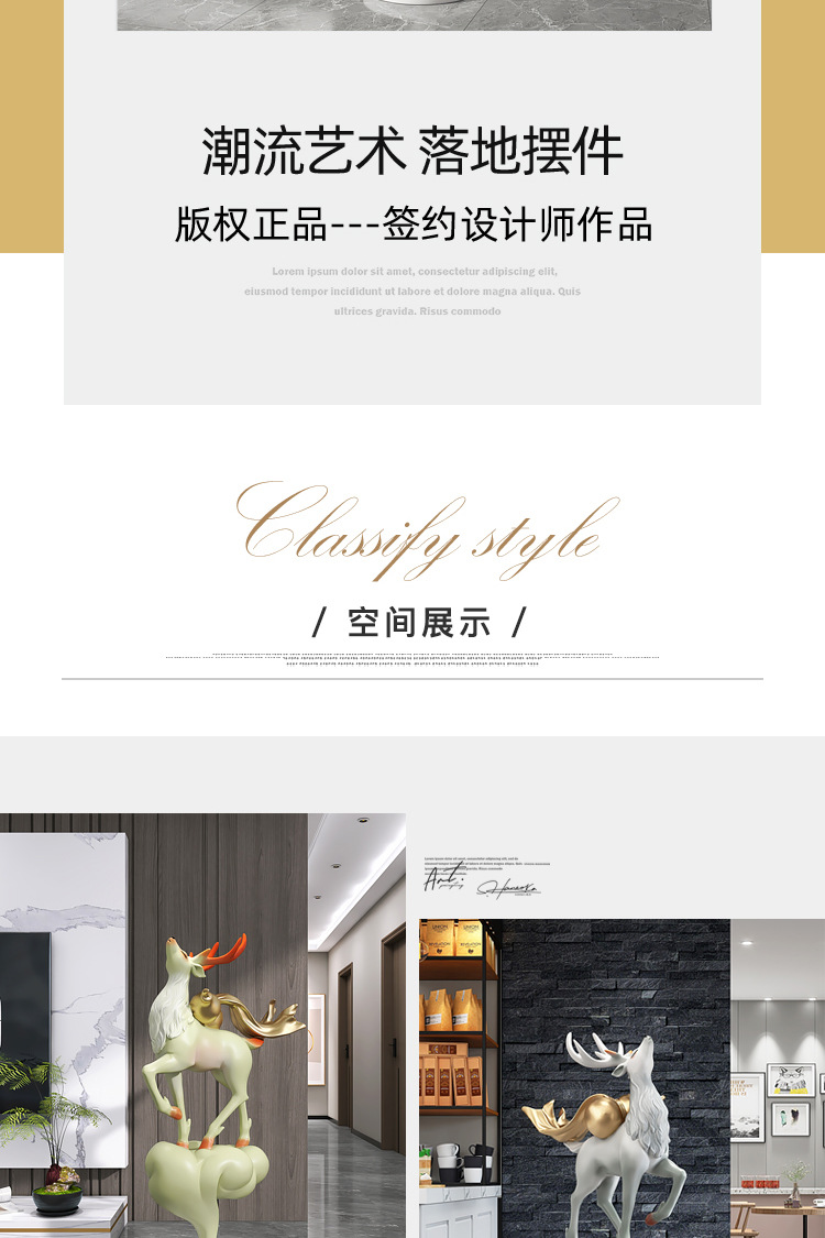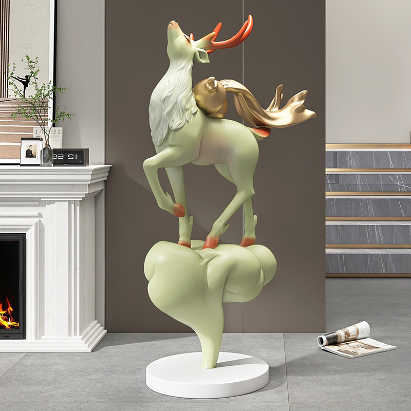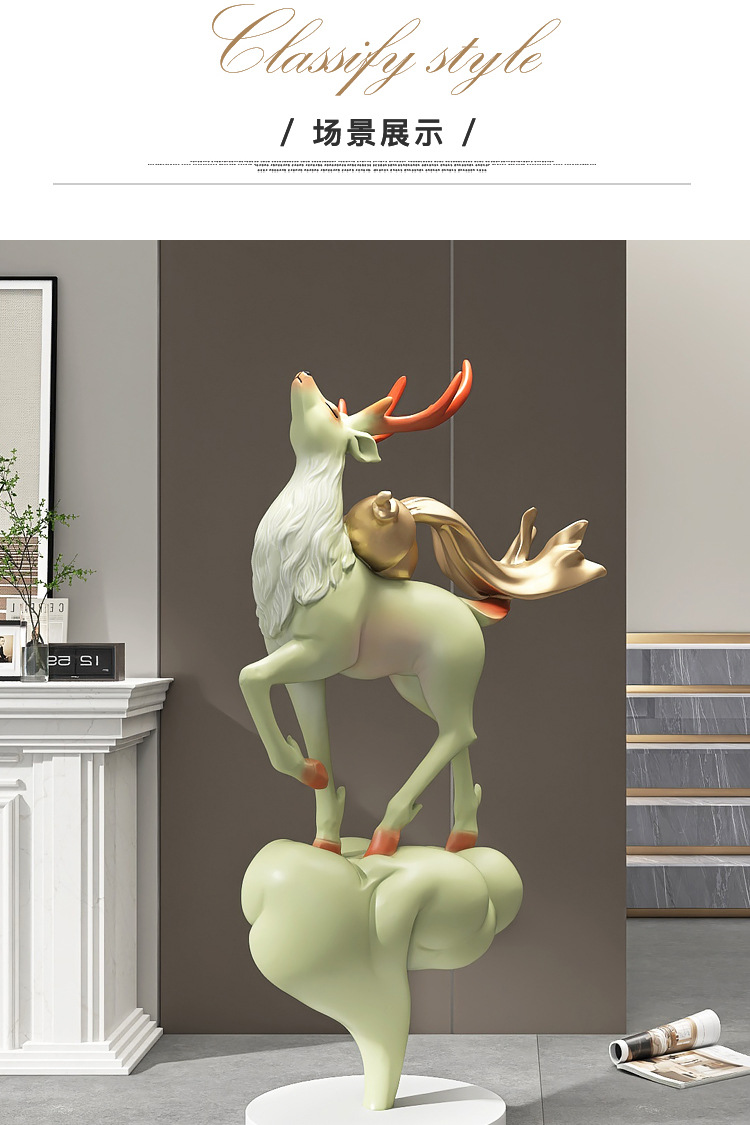 대형 엘크 거실 바닥 장식품 빛 고급 고급 고급 홈 장식 입구 조각 오프닝 집들이 선물스토어 가기