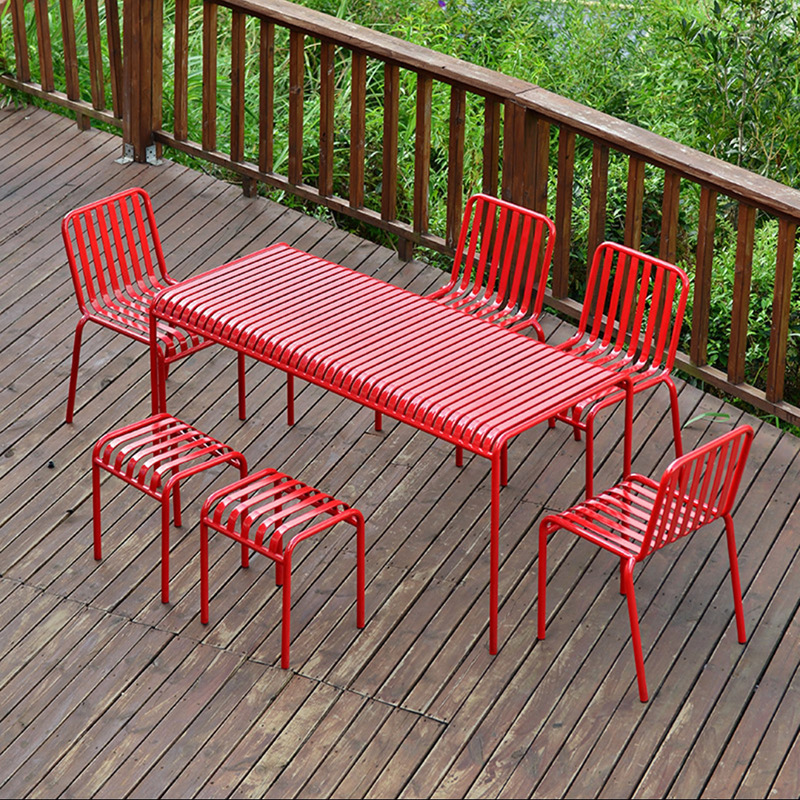 안뜰 테이블과 의자 인터넷 유명 레저 테이블과 의자 조합 야외 핑크 철제 테이블과 의자 간단한 야외 레저 야외 테이블 및 의자