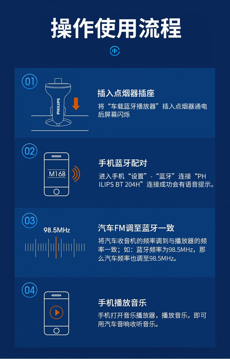 필립스 자동차 블루투스 수신기 DLP4002 무손실 mp3 자동차 음악 재생 전화 플러그인 USB 플래시 디스크스토어 가기