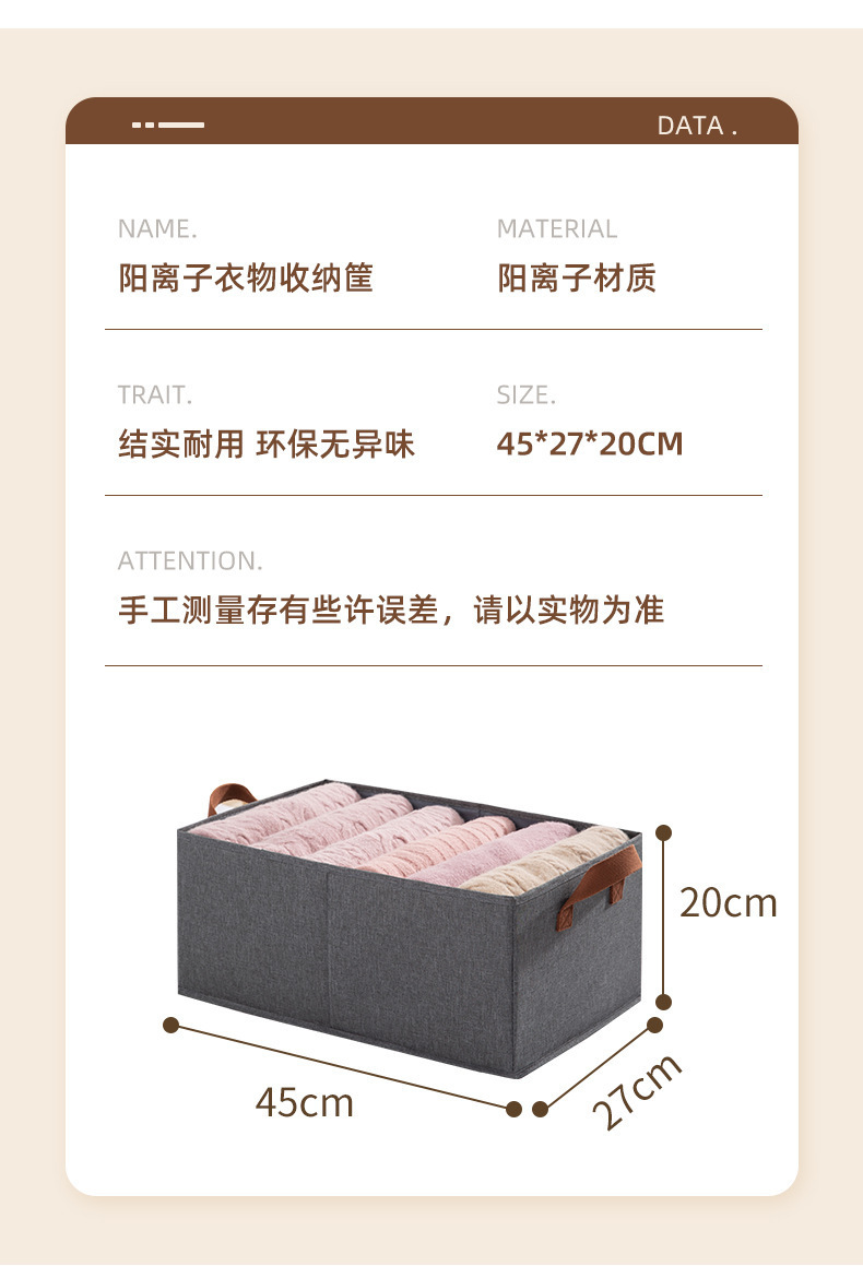 양이온 의류 보관 상자 직물 보관 상자 서랍 접이식 대용량 옷장 휴대용 보관 상자