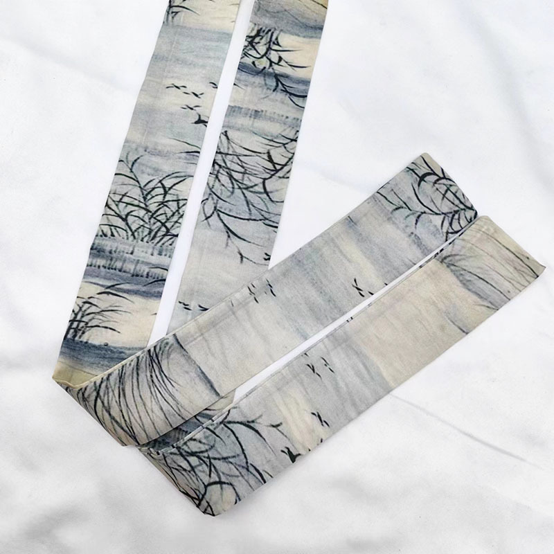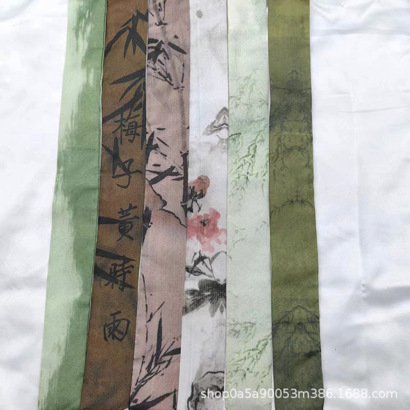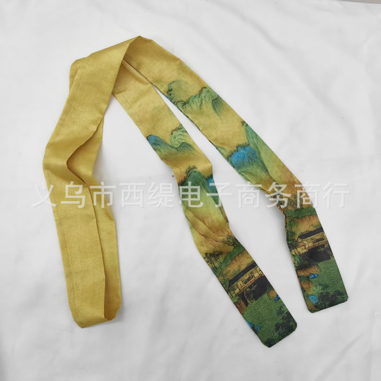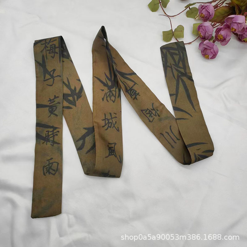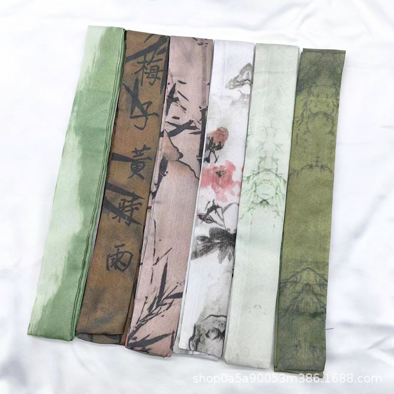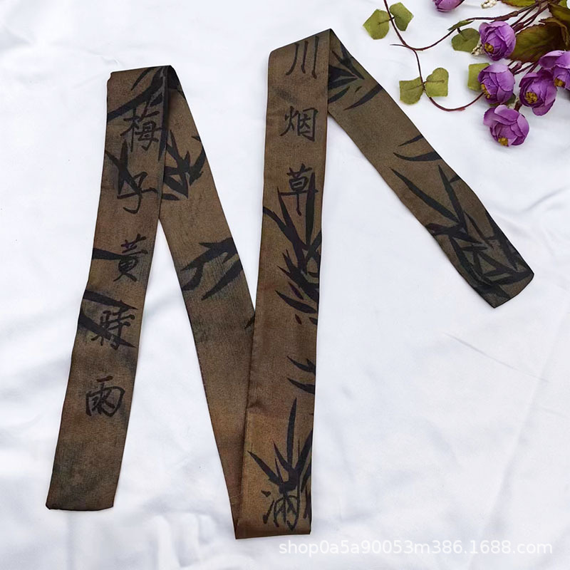 한푸 헤어 밴드 고대 중국 스타일의 잉크 스타일 헤어 밴드 실크 스카프 중국 스타일의 잉크 대나무 리본 넥타이 가방 의류 액세서리