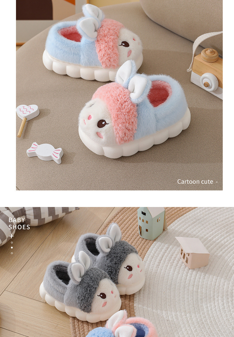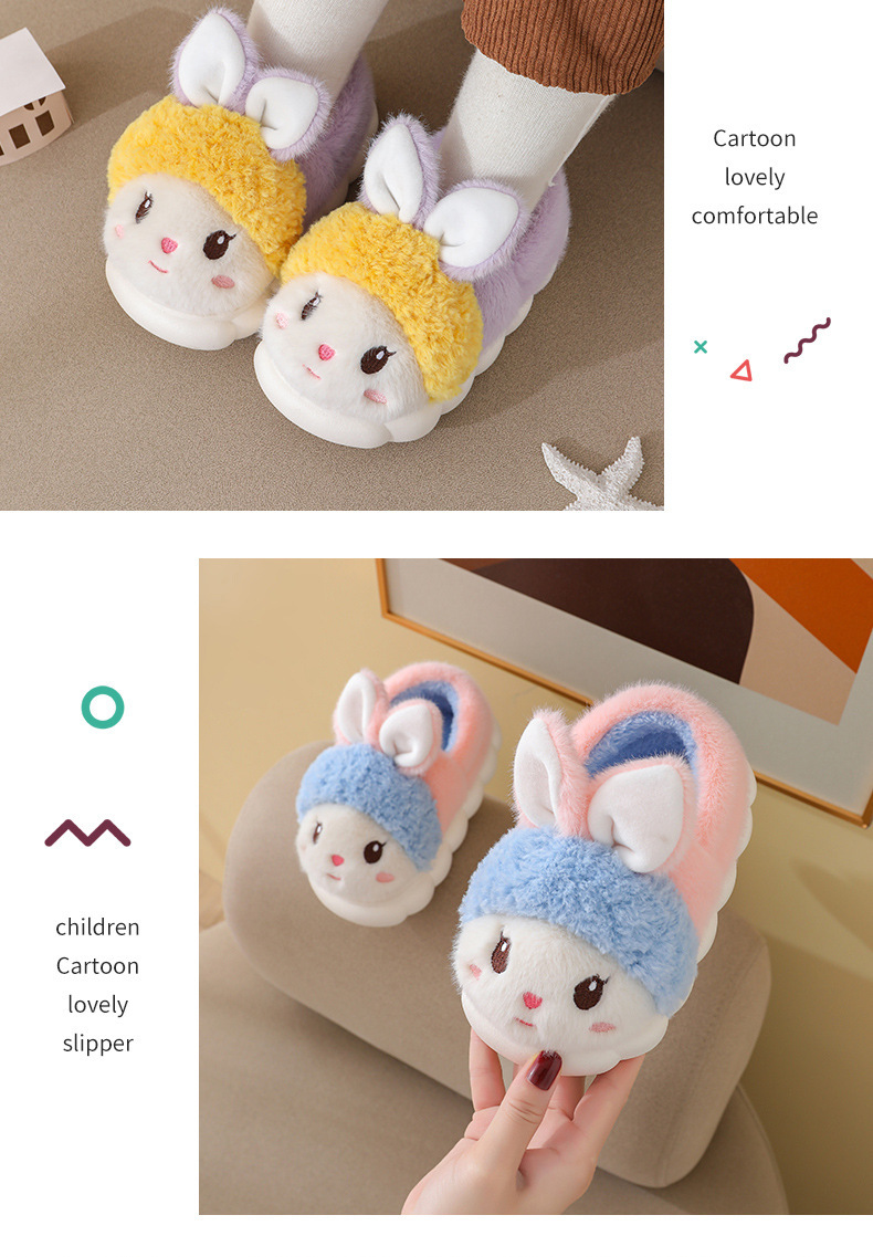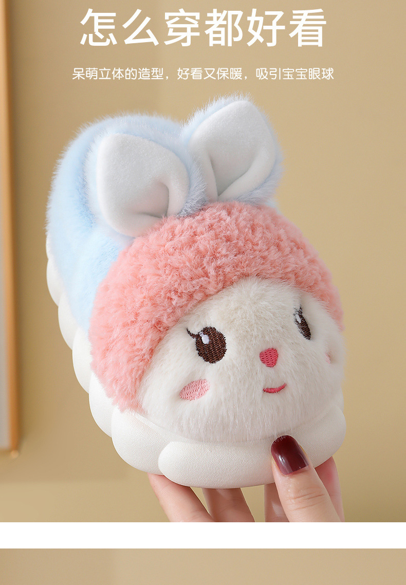 2024 새로운 겨울 어린이 따뜻한 패션 귀여운 만화 토끼 부드러운 보풀 슬리퍼 아동면 슬리퍼 봉제 신발스토어 가기