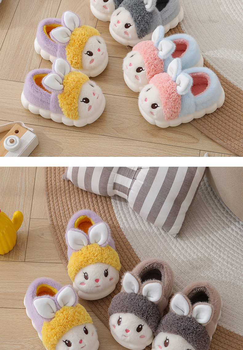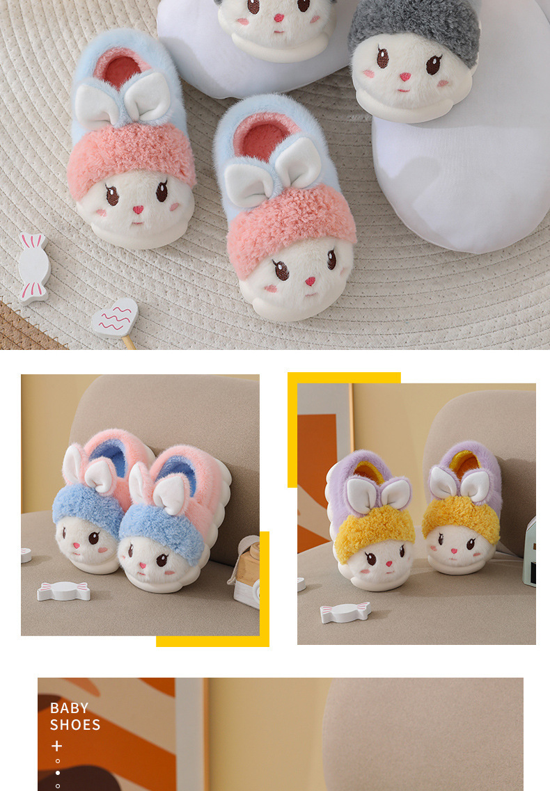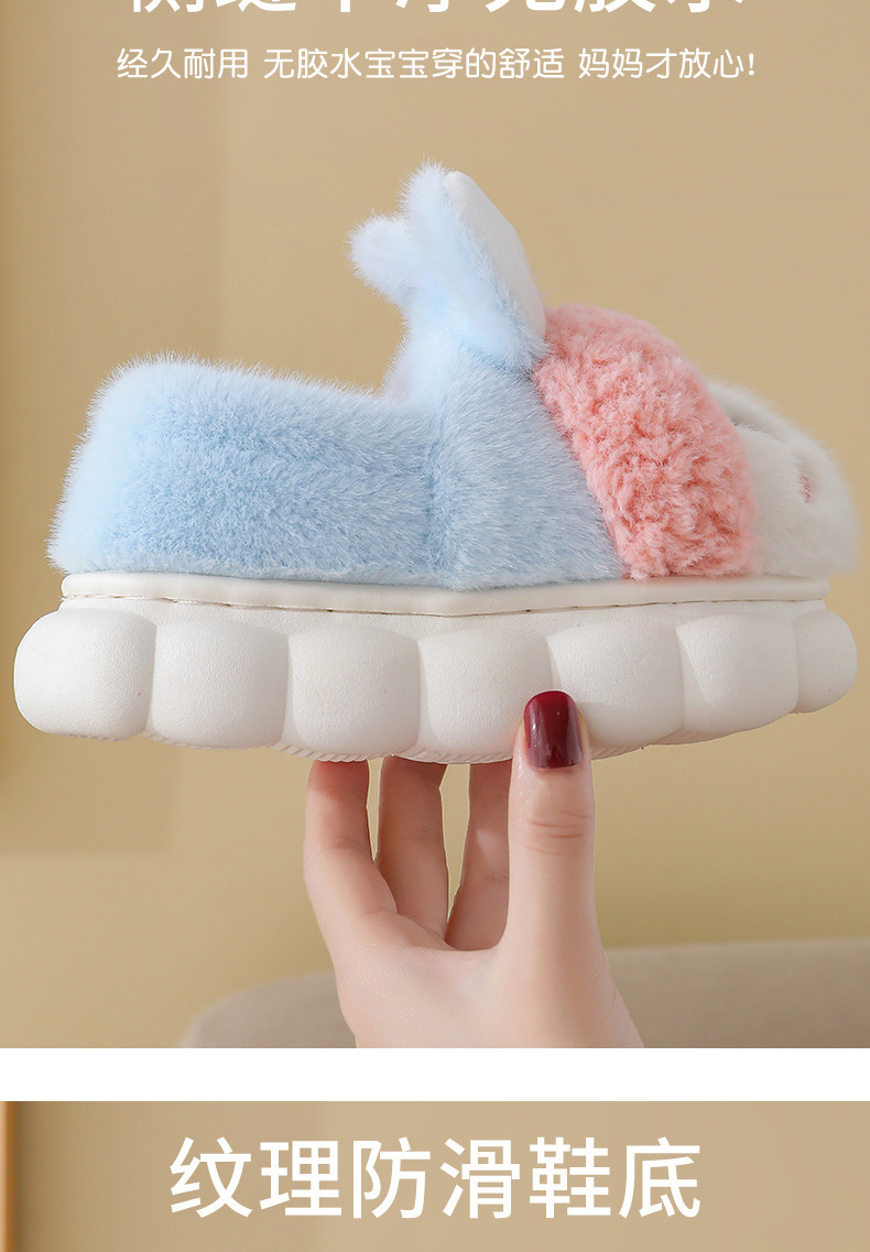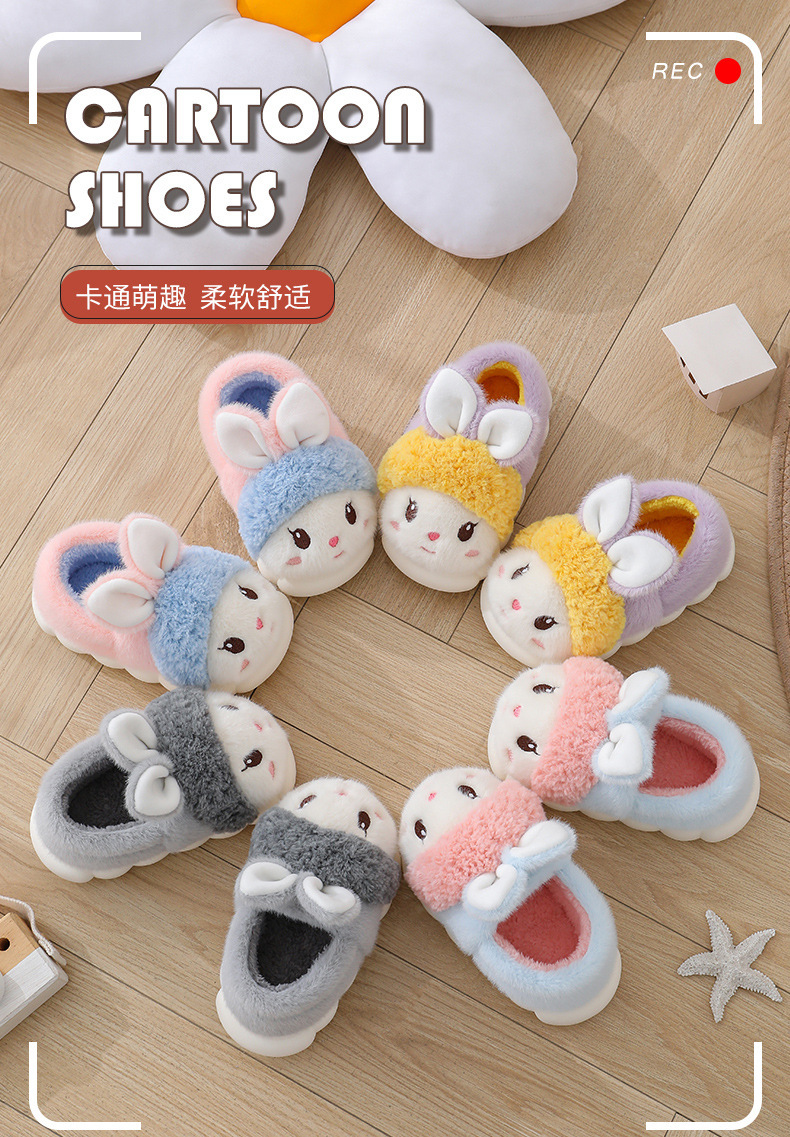 2024 새로운 겨울 어린이 따뜻한 패션 귀여운 만화 토끼 부드러운 보풀 슬리퍼 아동면 슬리퍼 봉제 신발스토어 가기