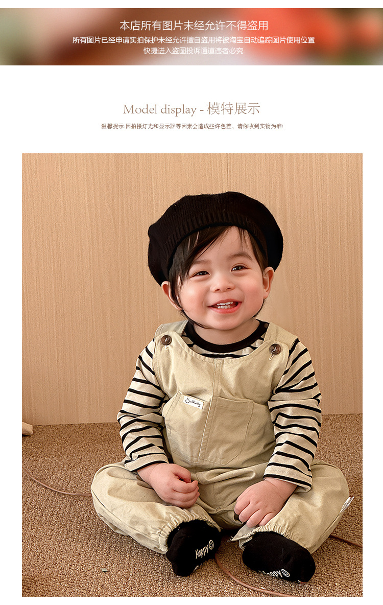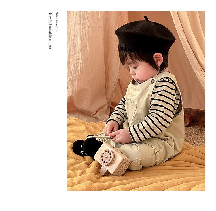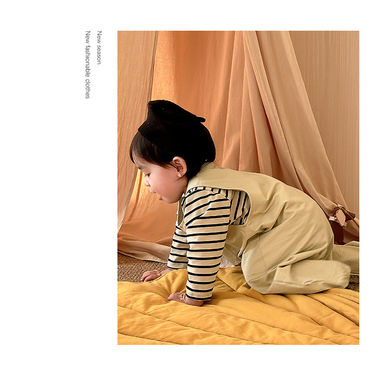 Dianxi 2025 봄과 가을 새로운 아기 작업복 스트라이프 티셔츠 서양식 아기 소년 점프 슈트 투피스 세트스토어 가기