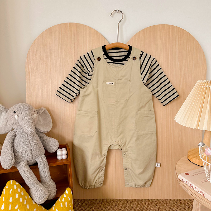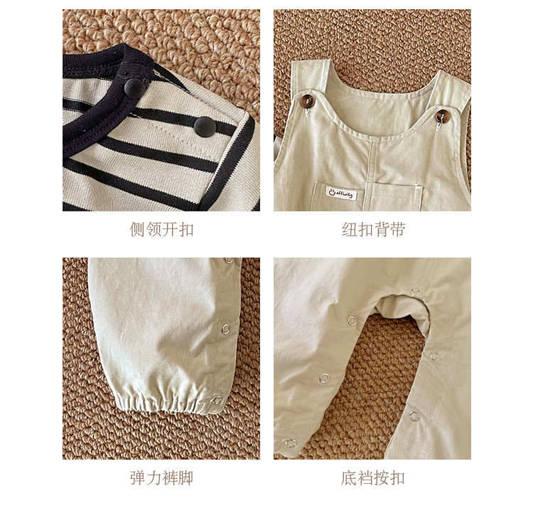 Dianxi 2025 봄과 가을 새로운 아기 작업복 스트라이프 티셔츠 서양식 아기 소년 점프 슈트 투피스 세트