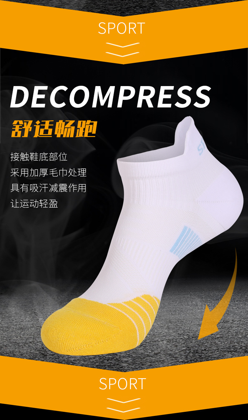 • 흰색 노란색 [수제 뼈없는 솔기 머리, 전문 달리기 양말]]