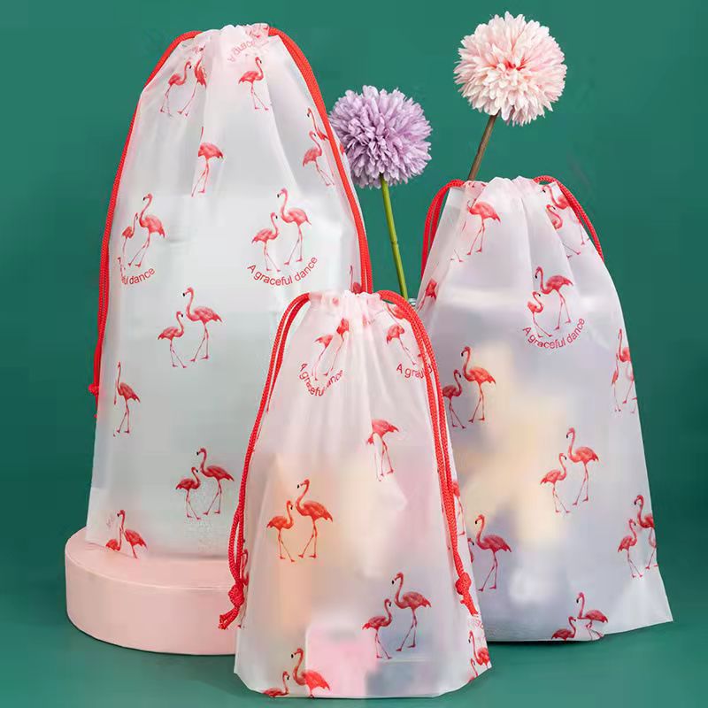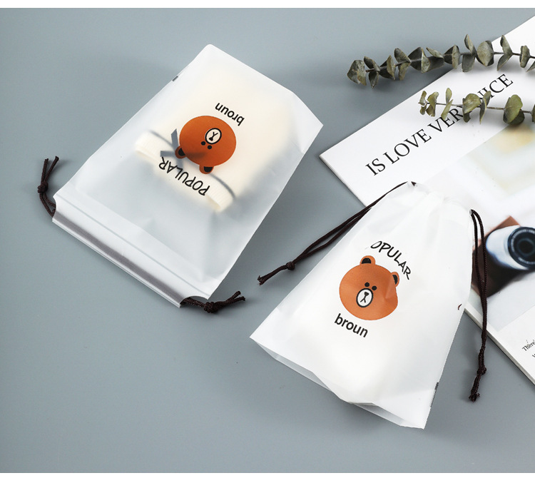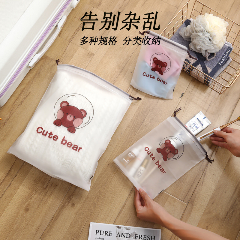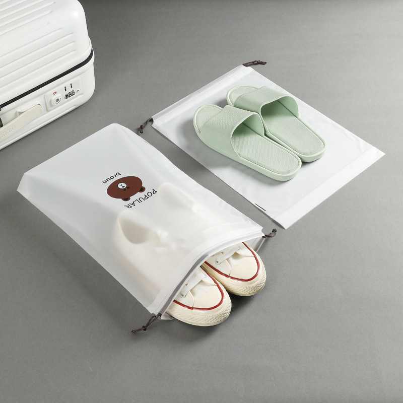 만화 귀여운 조임끈 주머니 여행 포장 조임끈 가방 젖빛 반투명 방진 및 방습 신발 보관 가방 휴대용스토어 가기