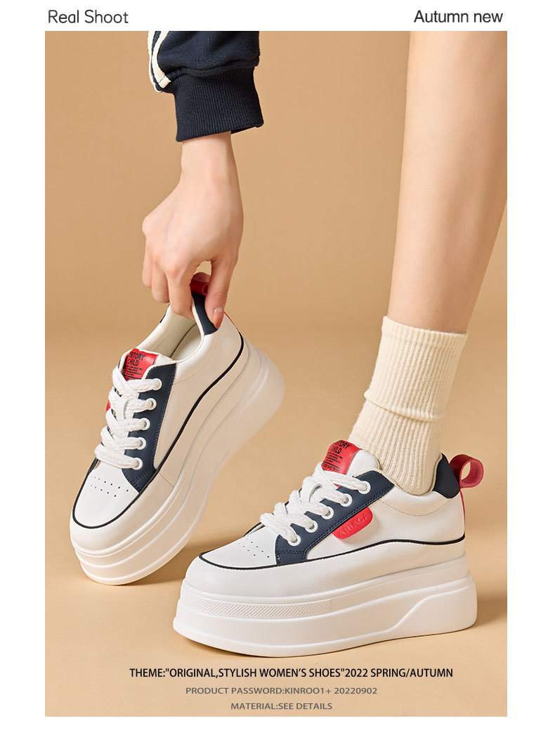 스폿 두꺼운 단독 흰색 신발 여성의 2024 년 봄과 여름 새로운 내부 높이 증가 보드 신발 여성 유행 신발 학생 스포츠 캐주얼 신발