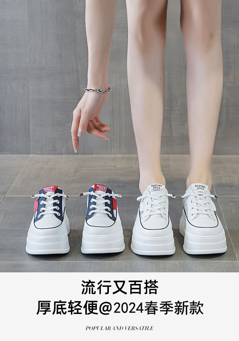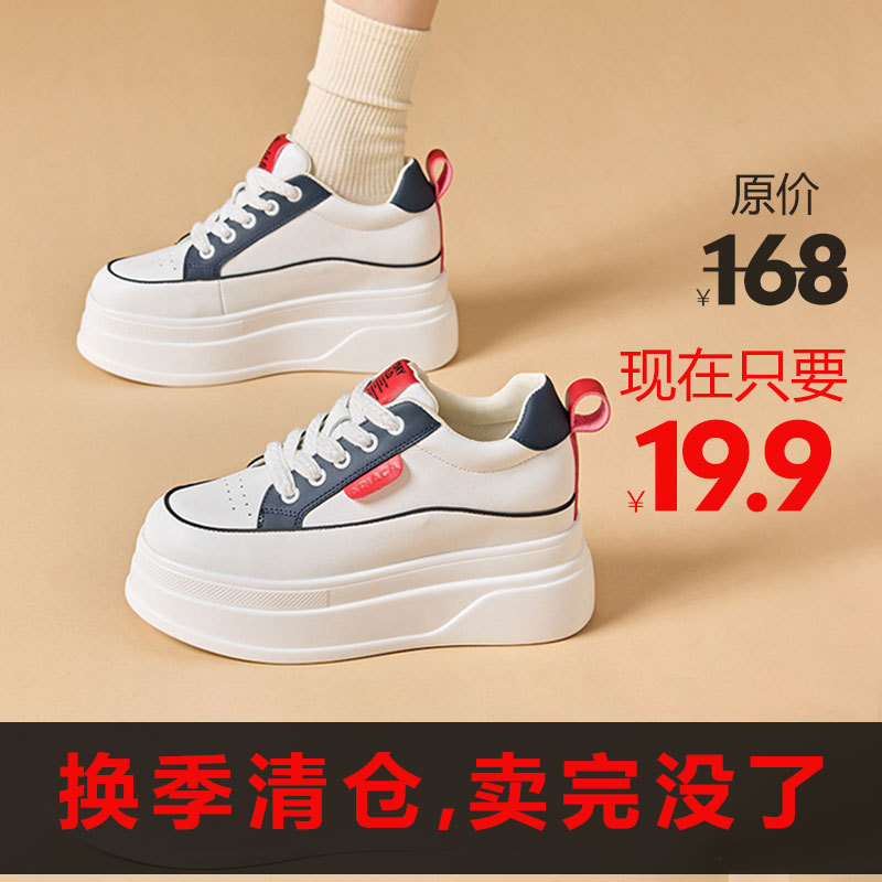 스폿 두꺼운 단독 흰색 신발 여성의 2024 년 봄과 여름 새로운 내부 높이 증가 보드 신발 여성 유행 신발 학생 스포츠 캐주얼 신발스토어 가기