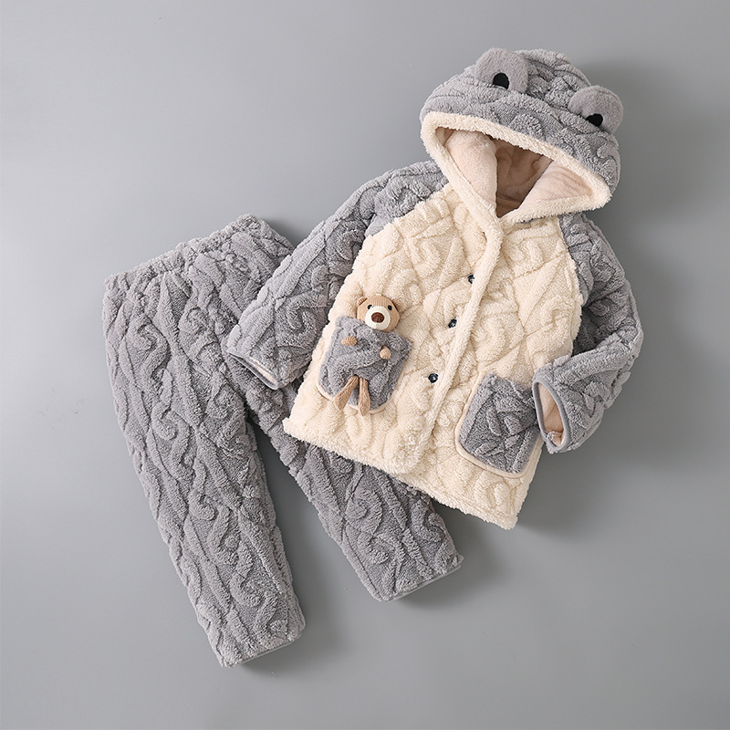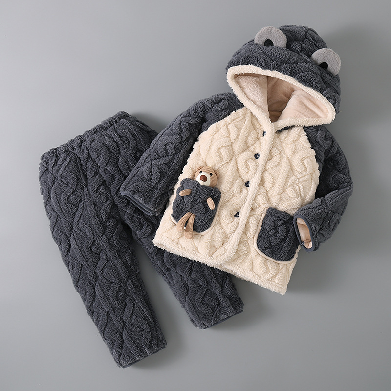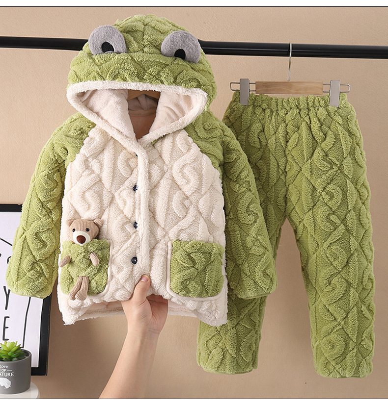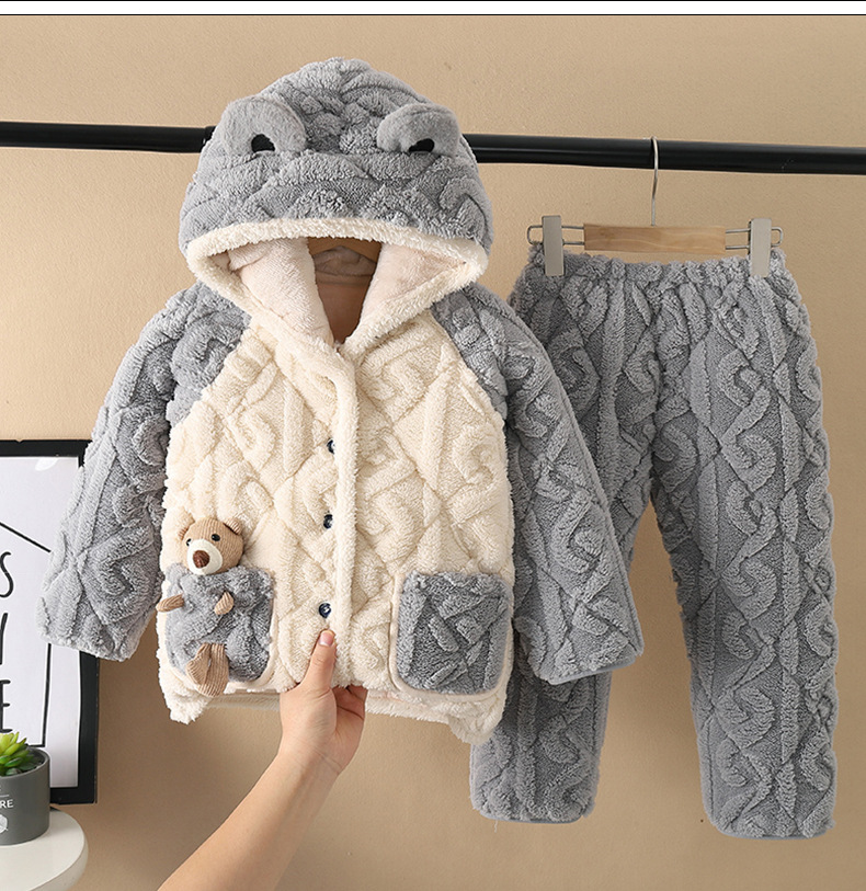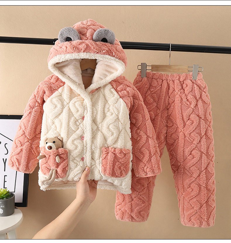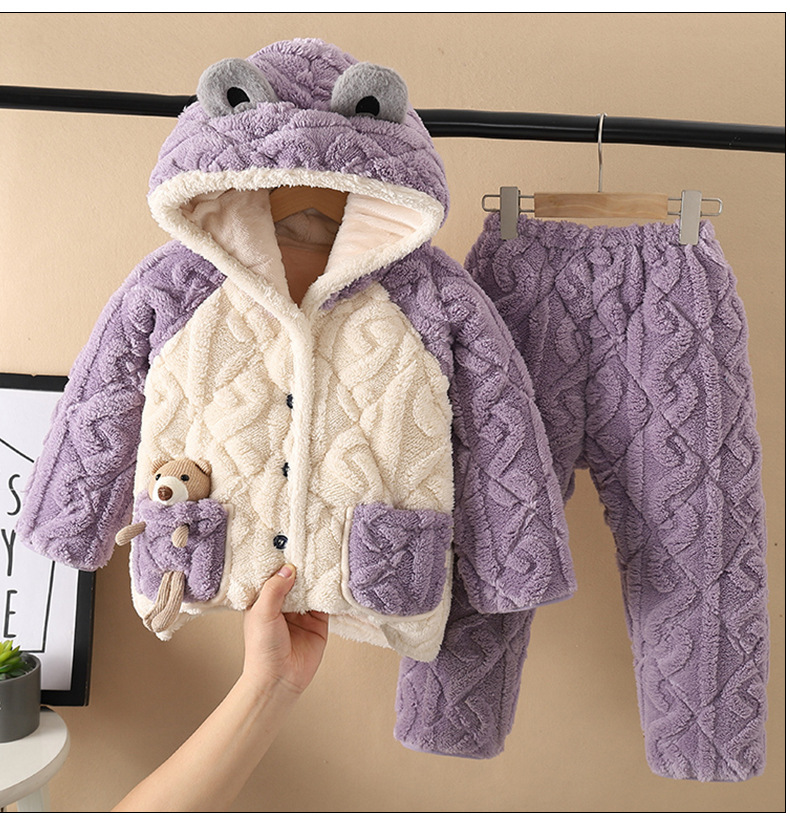 어린이 겨울 두꺼운 3 층 퀼트 소녀 잠옷 소년 플란넬 소녀 산호 양털 홈웨어