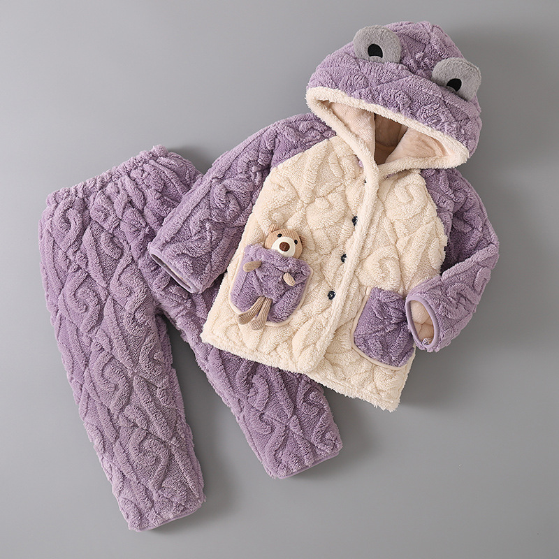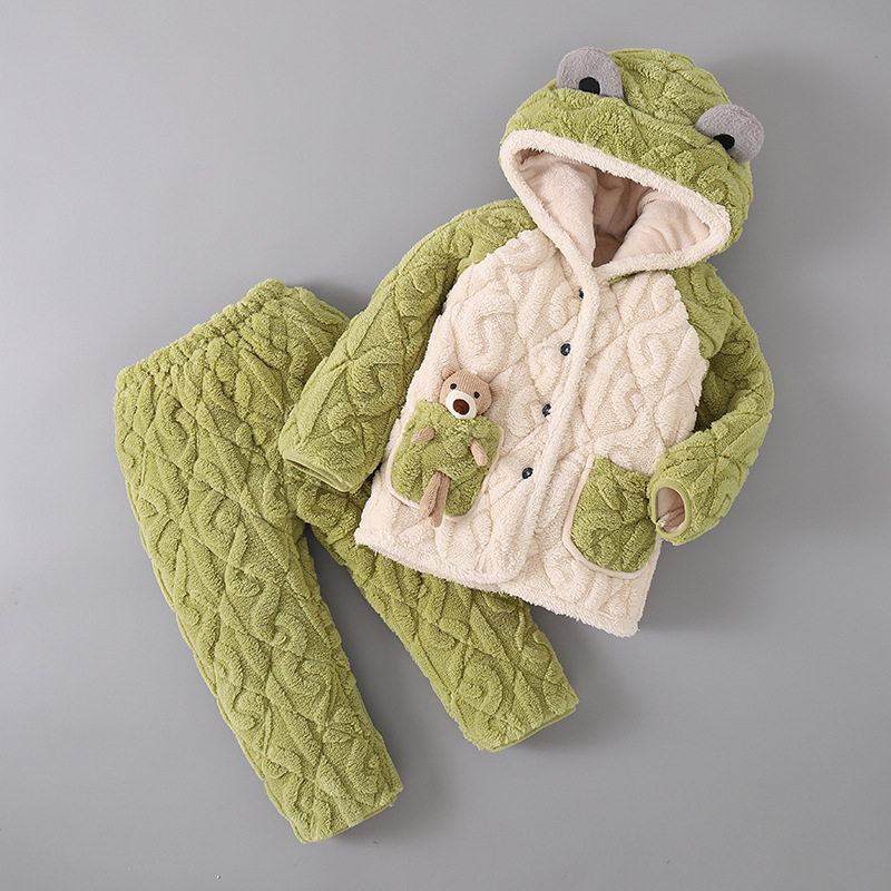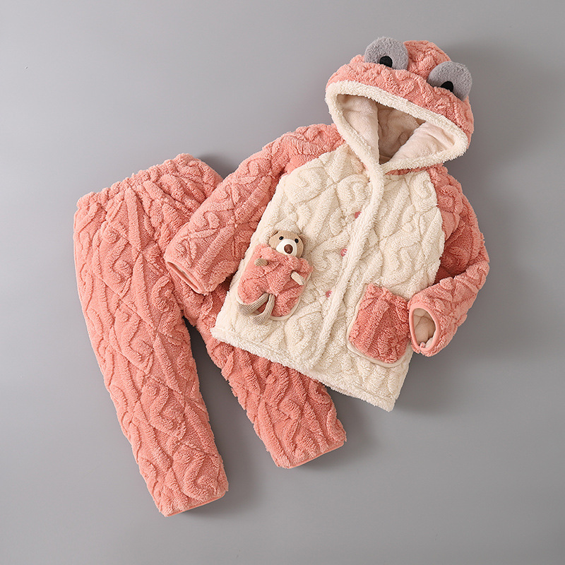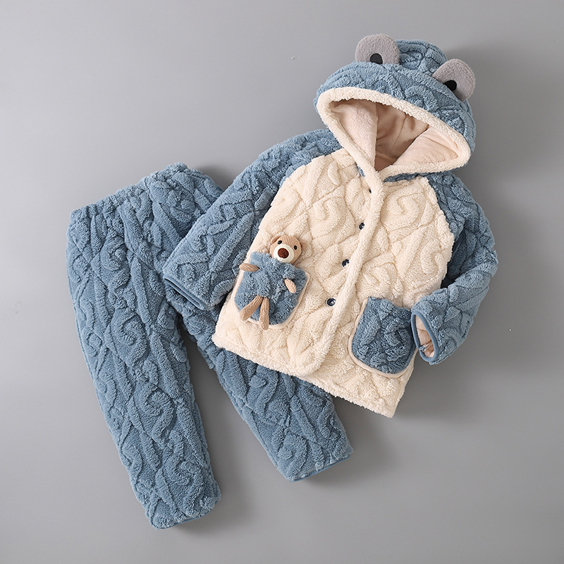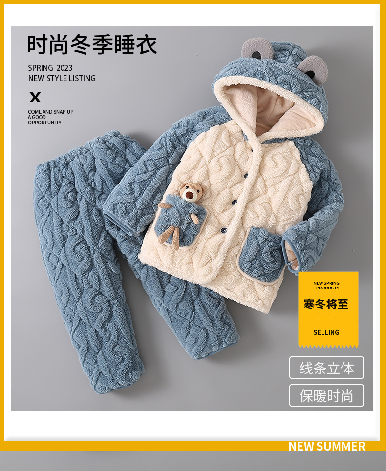어린이 겨울 두꺼운 3 층 퀼트 소녀 잠옷 소년 플란넬 소녀 산호 양털 홈웨어