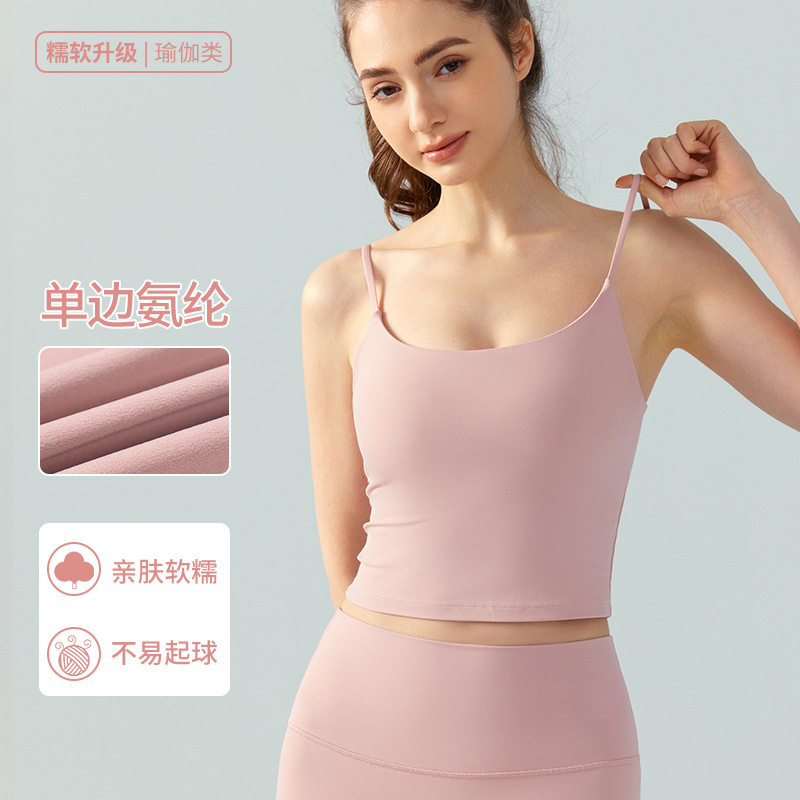 베이직 만능 아름다운 등 요가조끼, 심플한 유넥 스파게티 스트랩, 슬림핏 이너 캐미솔과 가슴패드
