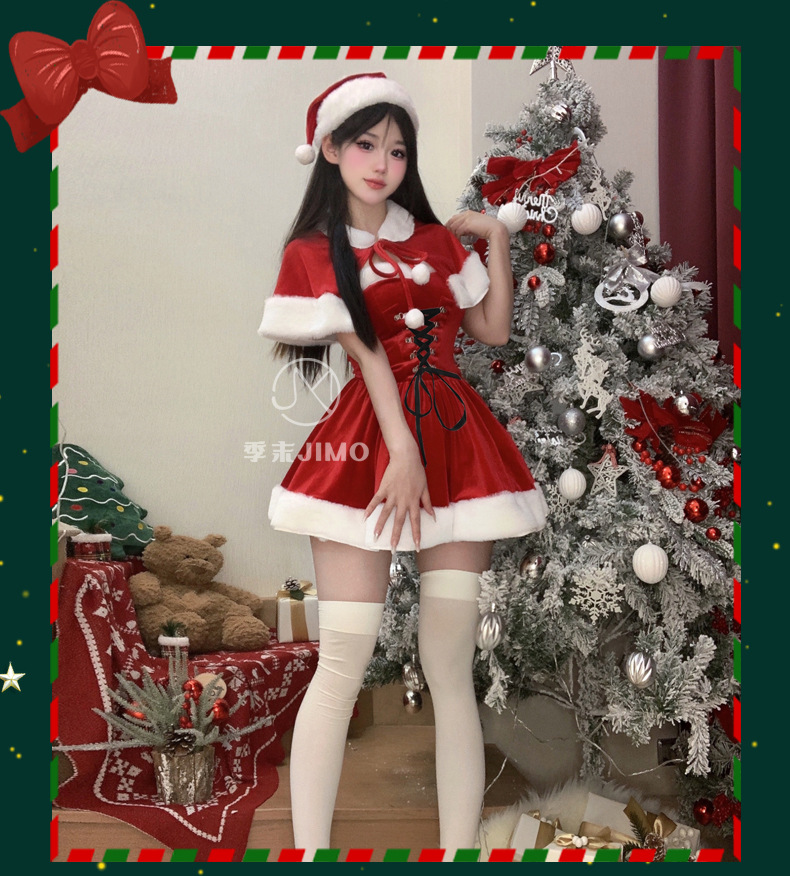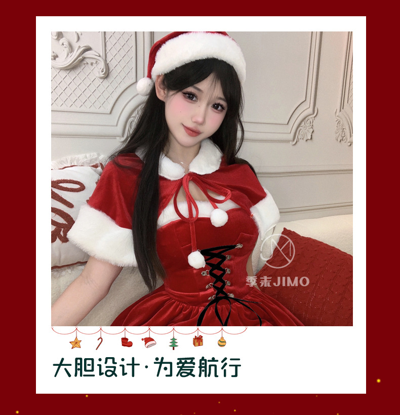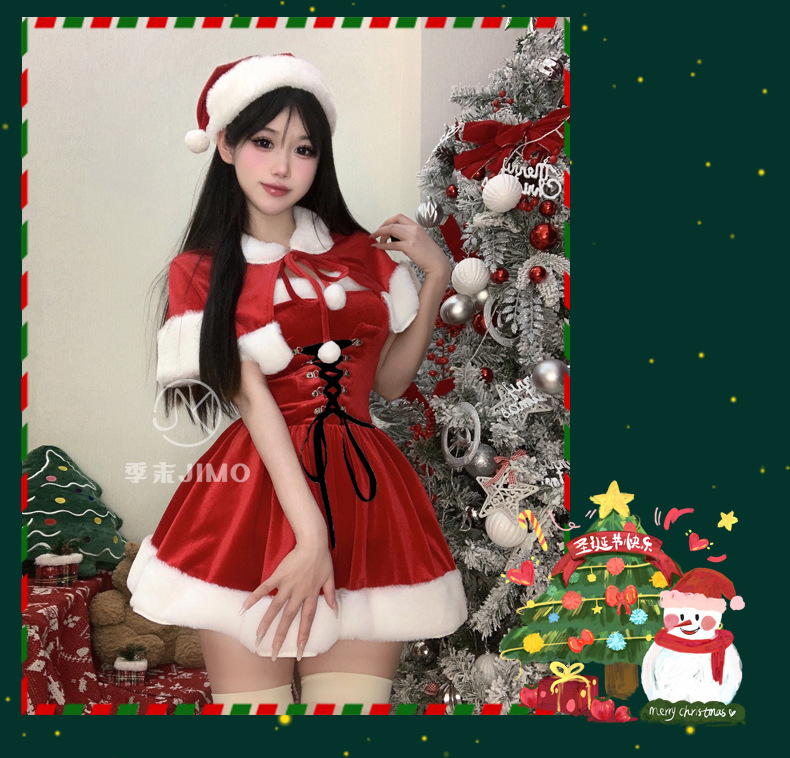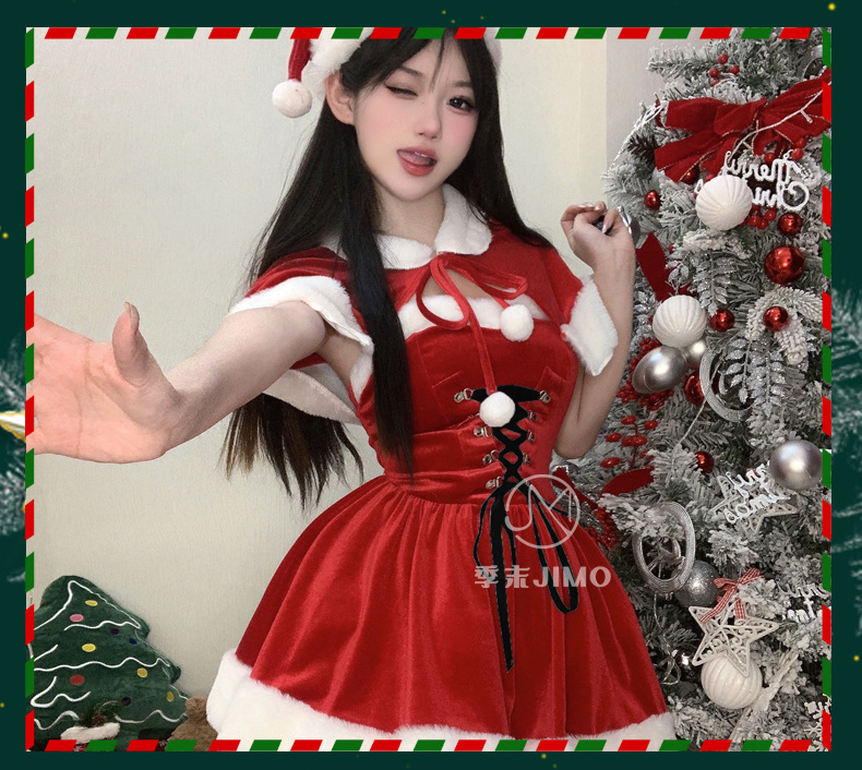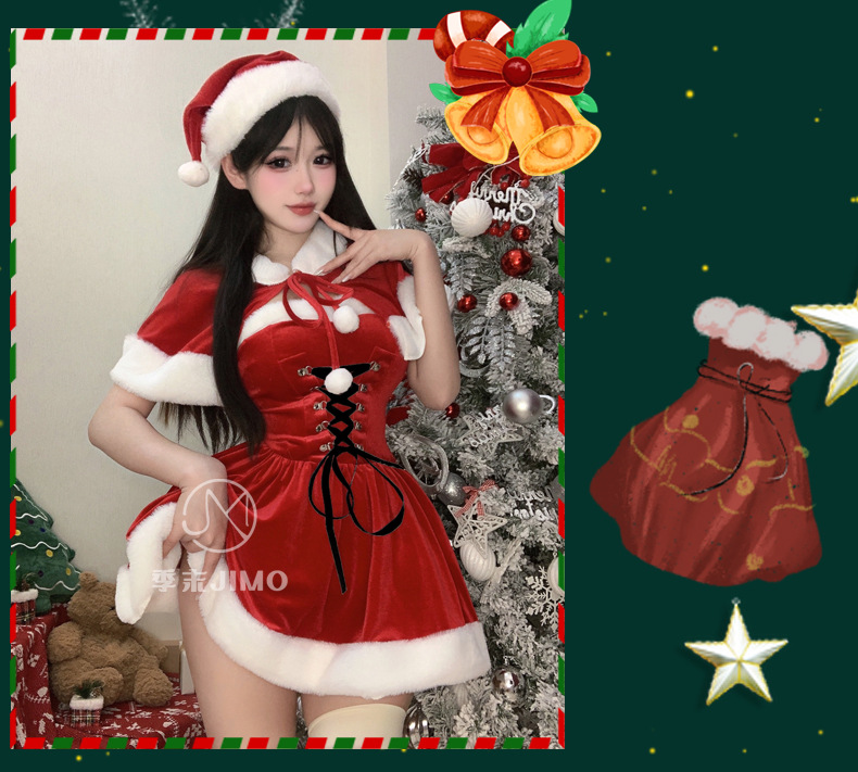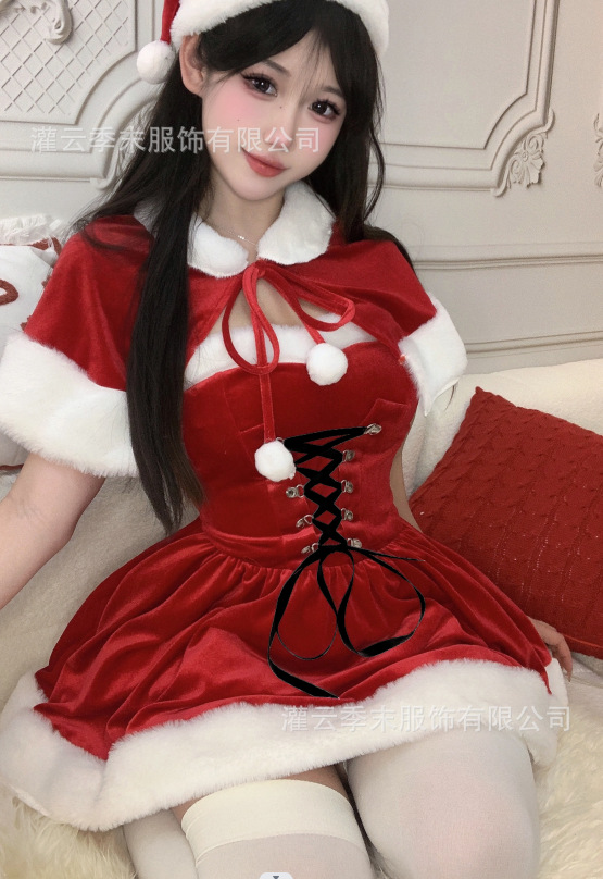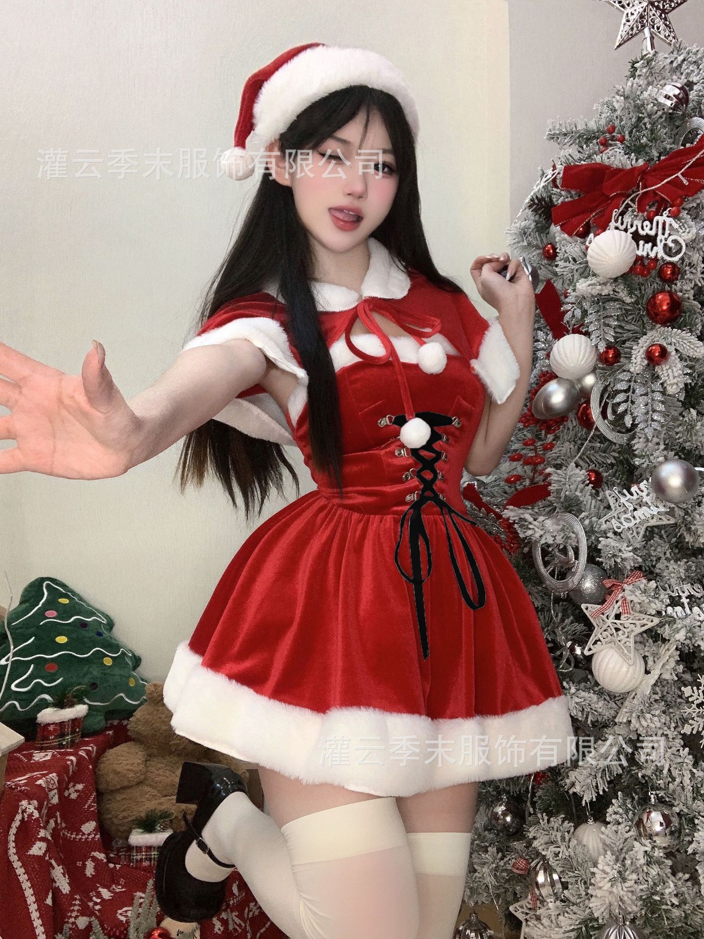 벨벳 달콤한 섹시한 란제리 새로운 크리스마스 옷 겨울 목도리 달콤한 허리-타이트 분위기 새해 붉은 전투 가운
